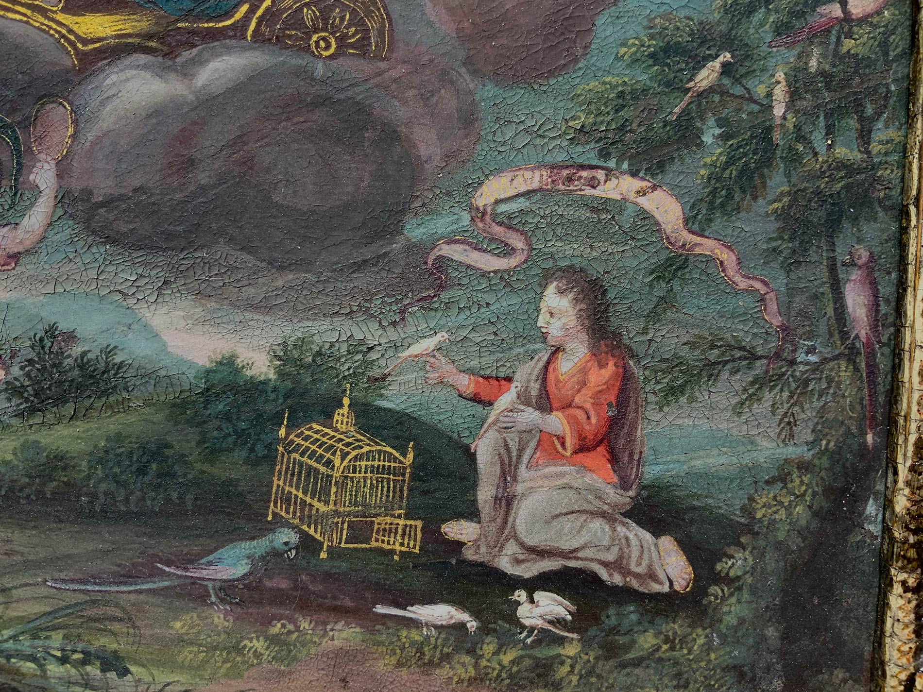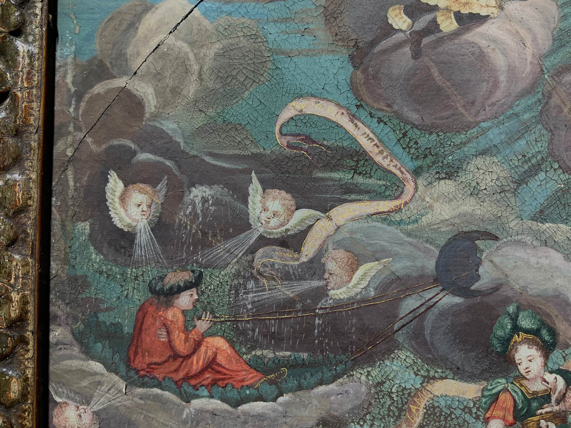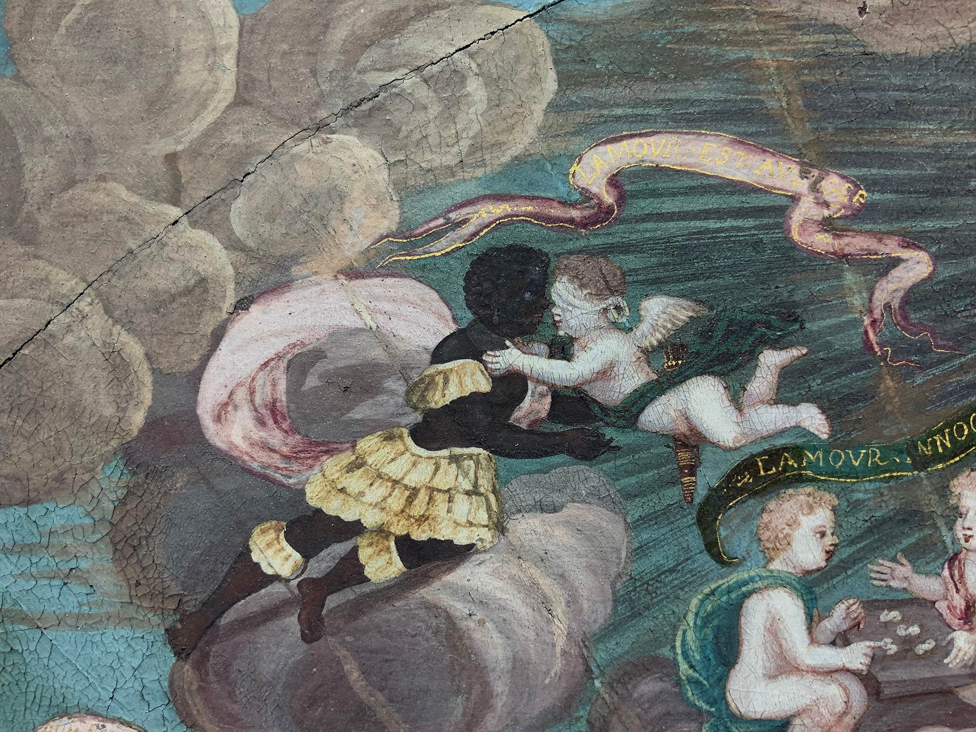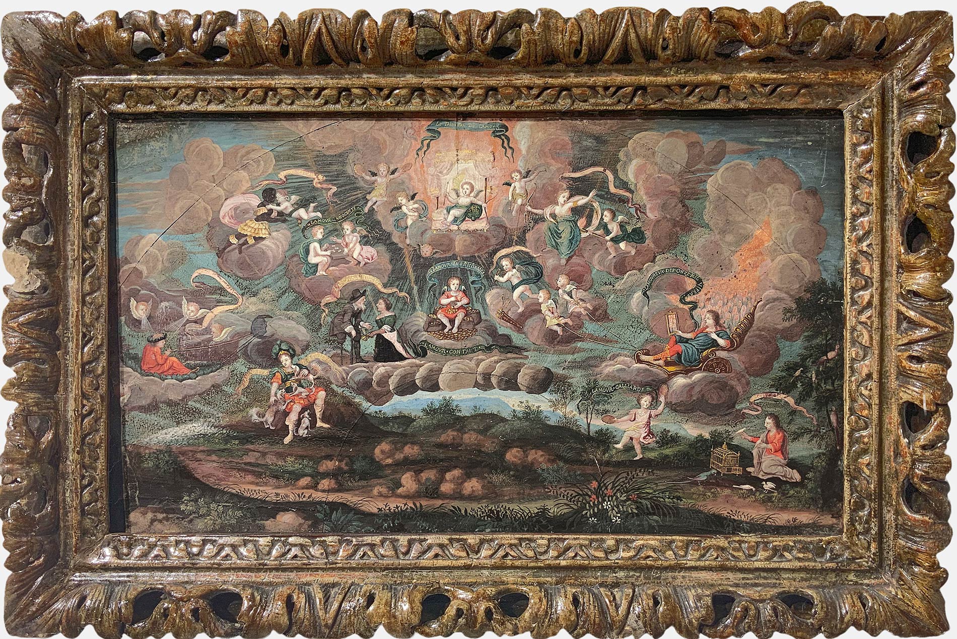 Henri Lerambert (Parigi metà 500-1609). Tribunale dell’amore. Cm 27x47,5, tempera su carta applicata a tavola in legno di rovere. Certificazione Prof. Francesco Gallo, docente Accademia delle Belle Arti di Roma. Autore presente al Louvre di Parigi