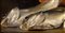 Giuseppe Recco (Napoli, 1634 - Milano, 1695), Natura morta di pesci. Uno dei maggiori rappresentanti della Natura Morta napoletana, la cui produzione artistica é vastissima e variegata; specialista di Nature Morte con pesci. La sua formazione trova riferimenti vari essendo venuto a contatto con la cultura e gli ambienti romani, spagnoli e fiamminghi. Infatti, il dipinto in questione torva elementi tipici fiamminghi nel trattamento coloristico. Inoltre da notare come l'umile materia della Natura Morta viene trasfigurata con tocchi di luce sul fondo chiaro-scurale e assurge a dimensioni neocaravaggiste, trascendendo da influenze barocche tipiche del suo tempo. Luce, colore e brillantezza sono i canoni della sua pittura. 67x67, olio su tela