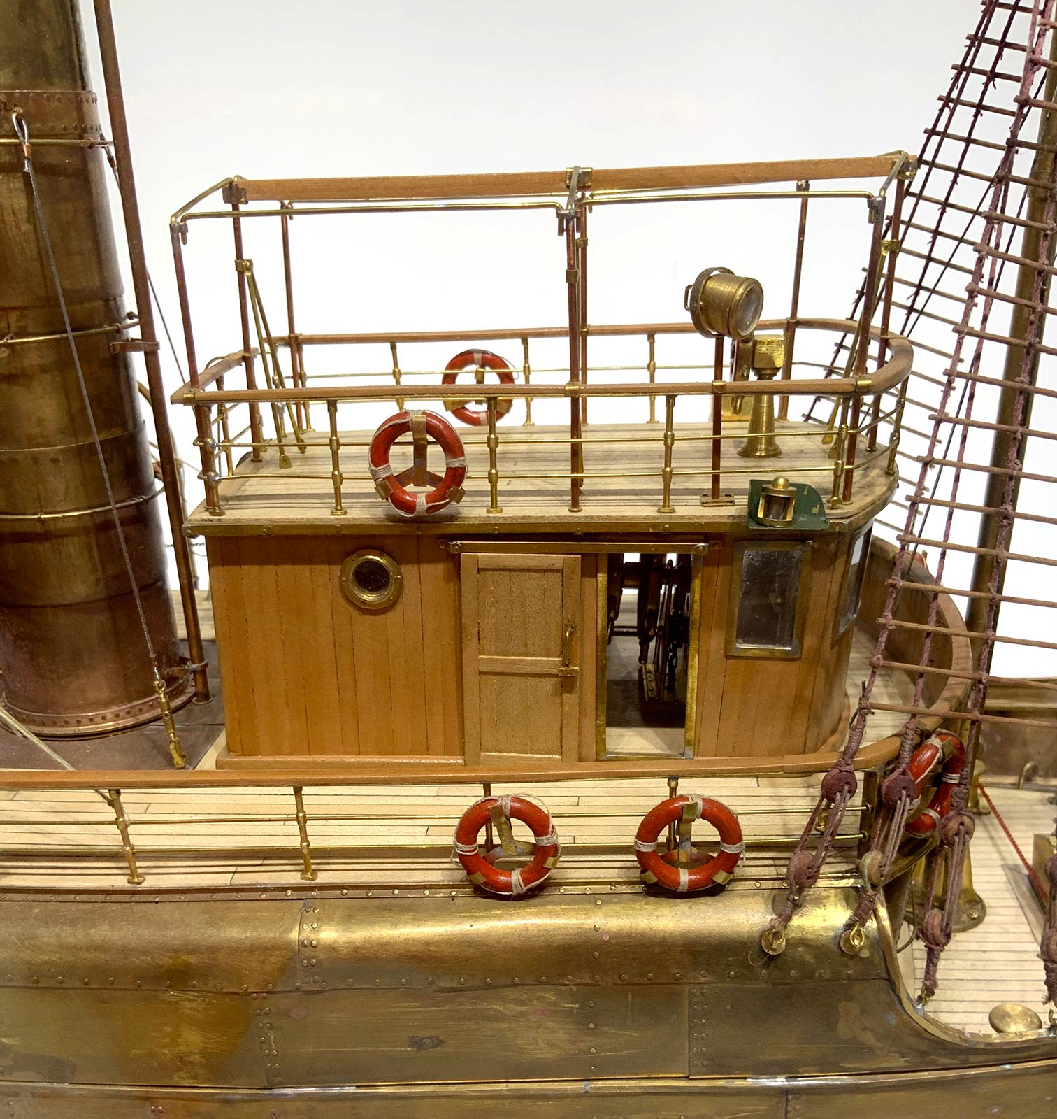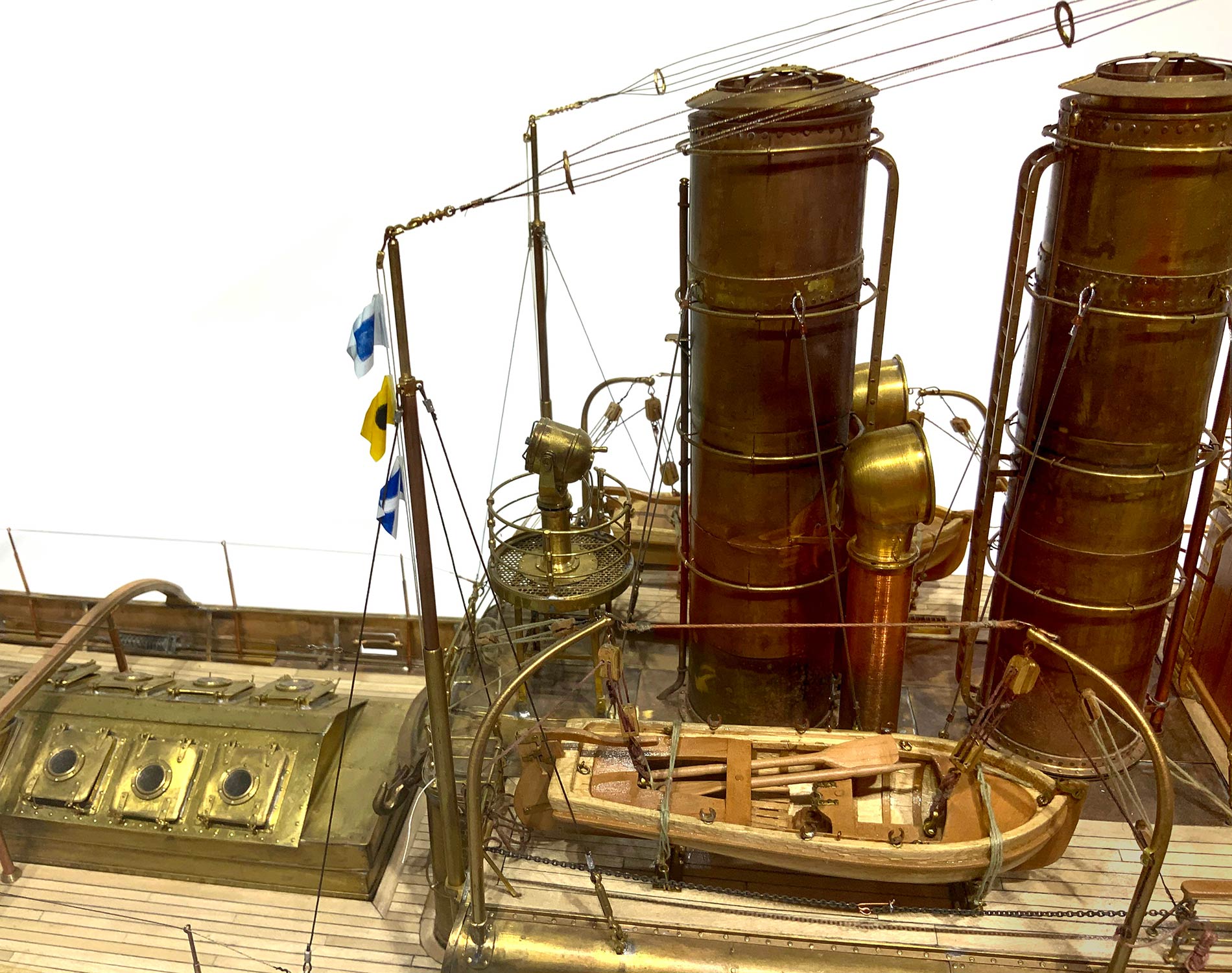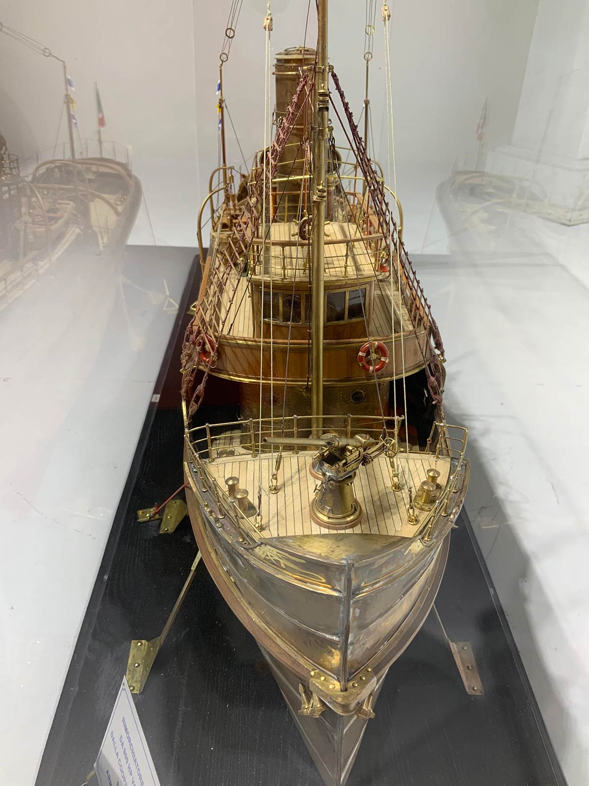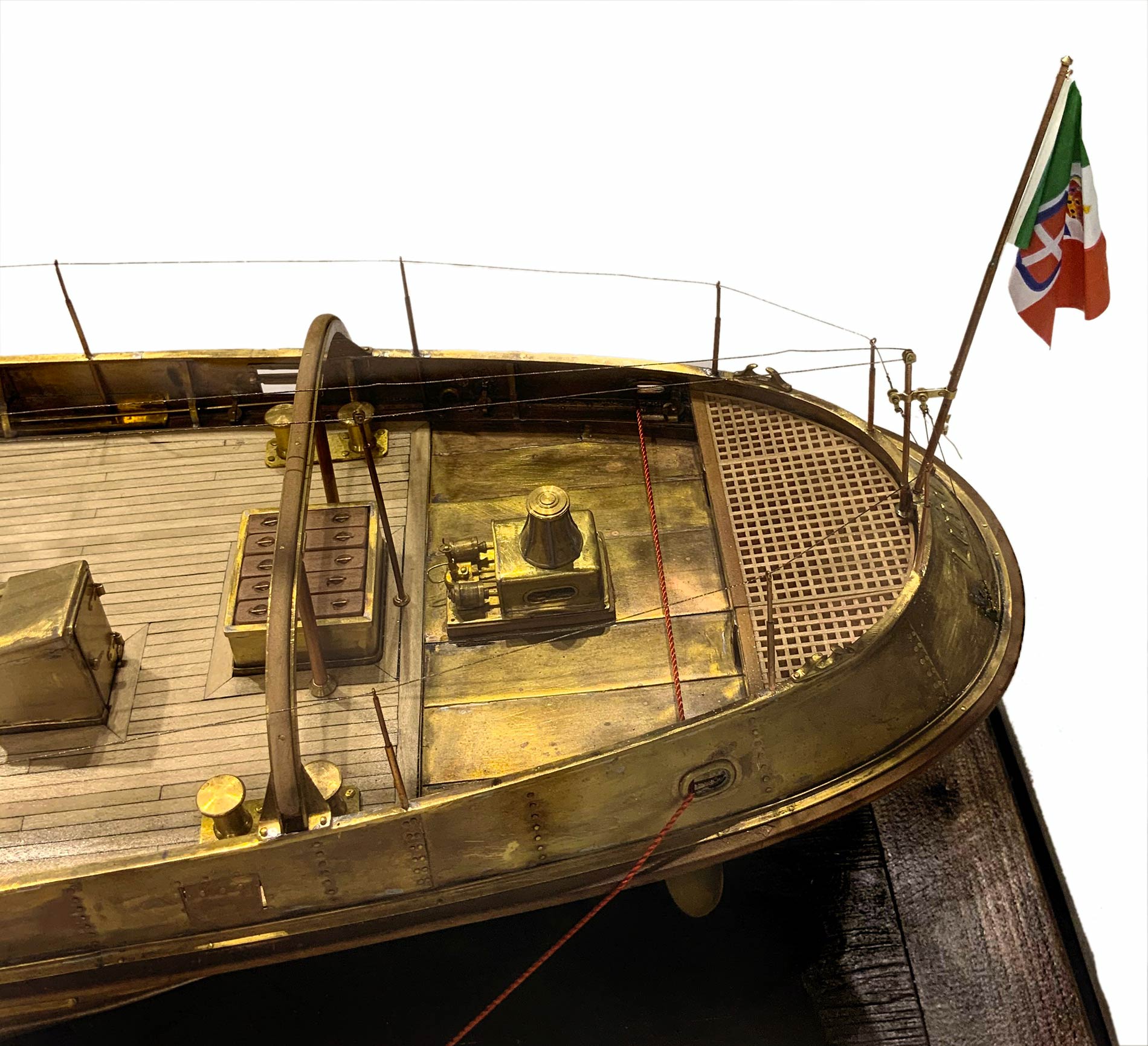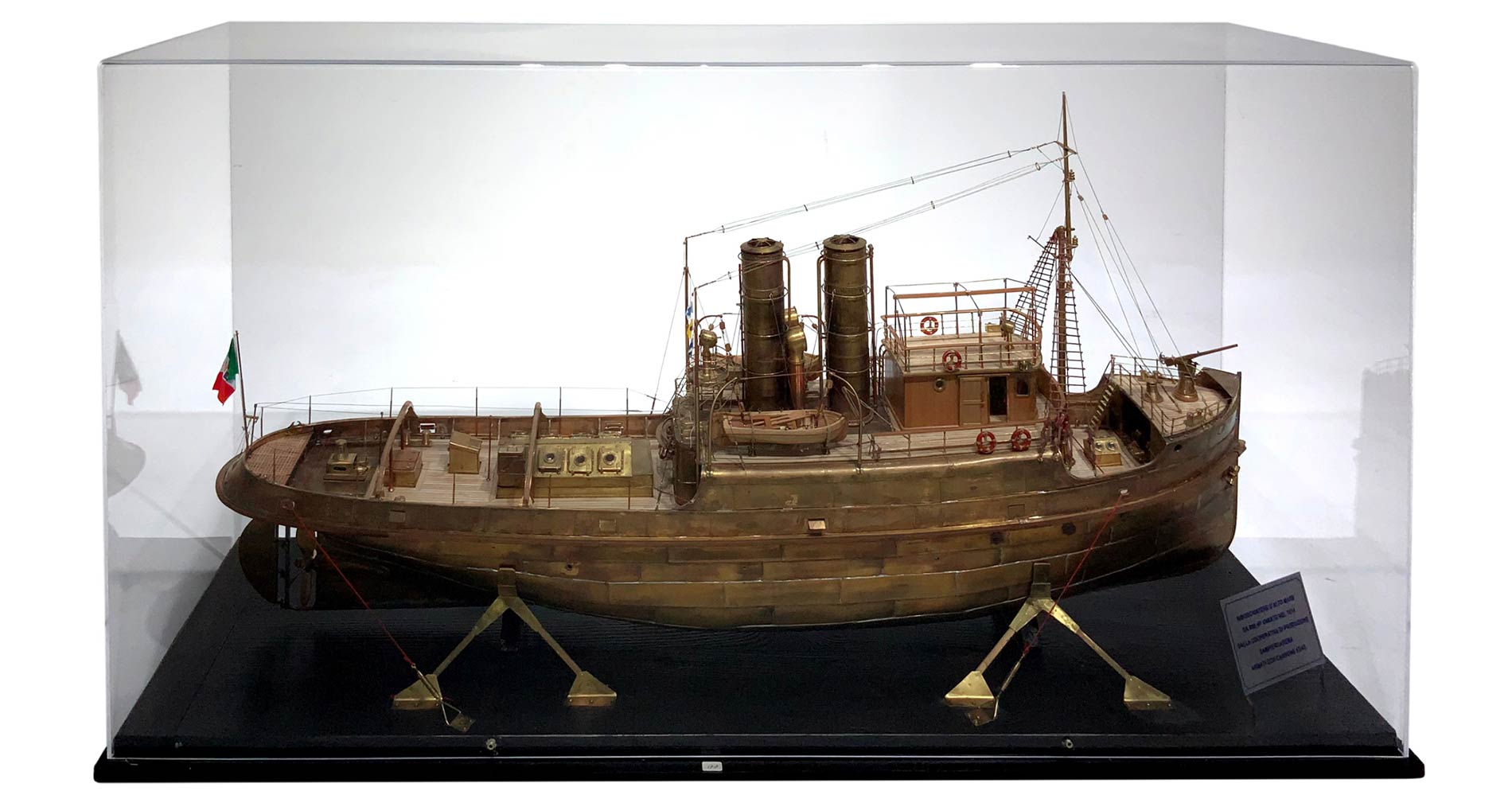 Luni Rimorchiatore portuale alto mare scala 1:40: H Mm 450; Lunghezza Mm 930; Larghezza Mm 180. In ottone e listelli di legno di acero. Misura del modello originale: H 18; Lunghezza M 37,2; Larghezza M 7,2. Partecipazione certificata al campionato d’Italia della federazione italiana Navimodel. Classificandosi nella Classe C2 nel rango argento, con qualificazione ai mondiali che avverranno nel 2020 a Fiume in Croazia. Tale opera è stata creata su disegni originali della marina militare italiana. Unico esemplare.