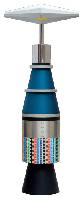 Alessandro Mendini e Bruno Gregori TOTEM, 1994 Eseguito per allestimento Swatch. In legno laccato, alluminio verniciato e laminato; altezza cm 230 Bibliografia: R. Poletti, Atelier Mendini una utopia visiva, Fabbri Ed., 1994