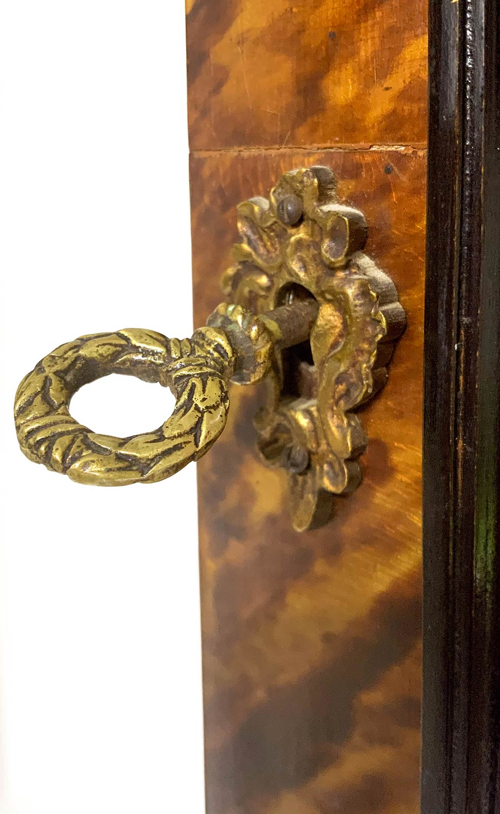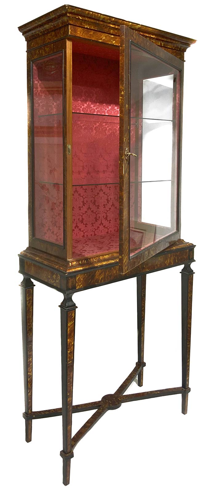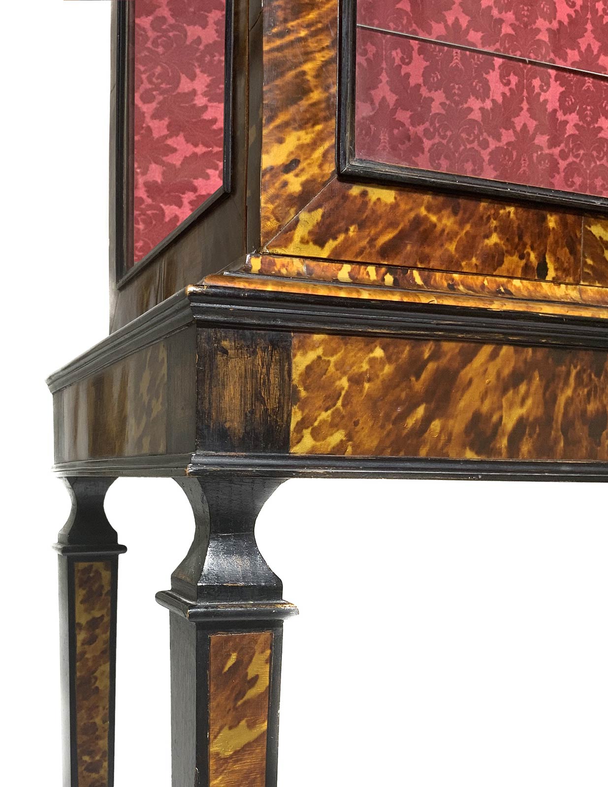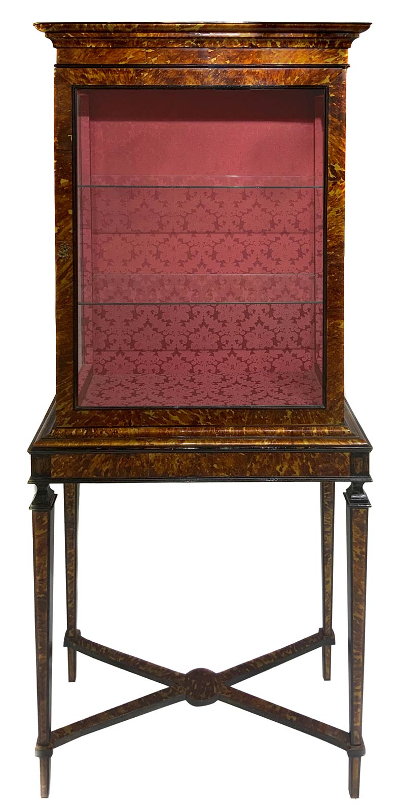 Vetrina in tartaruga di mare. Inizi XX secolo. Palermo (Sicilia) . Vetrina a due corpi con base in stile Luigi XVI, piedi tronco piramidali. H cm 194x80x40