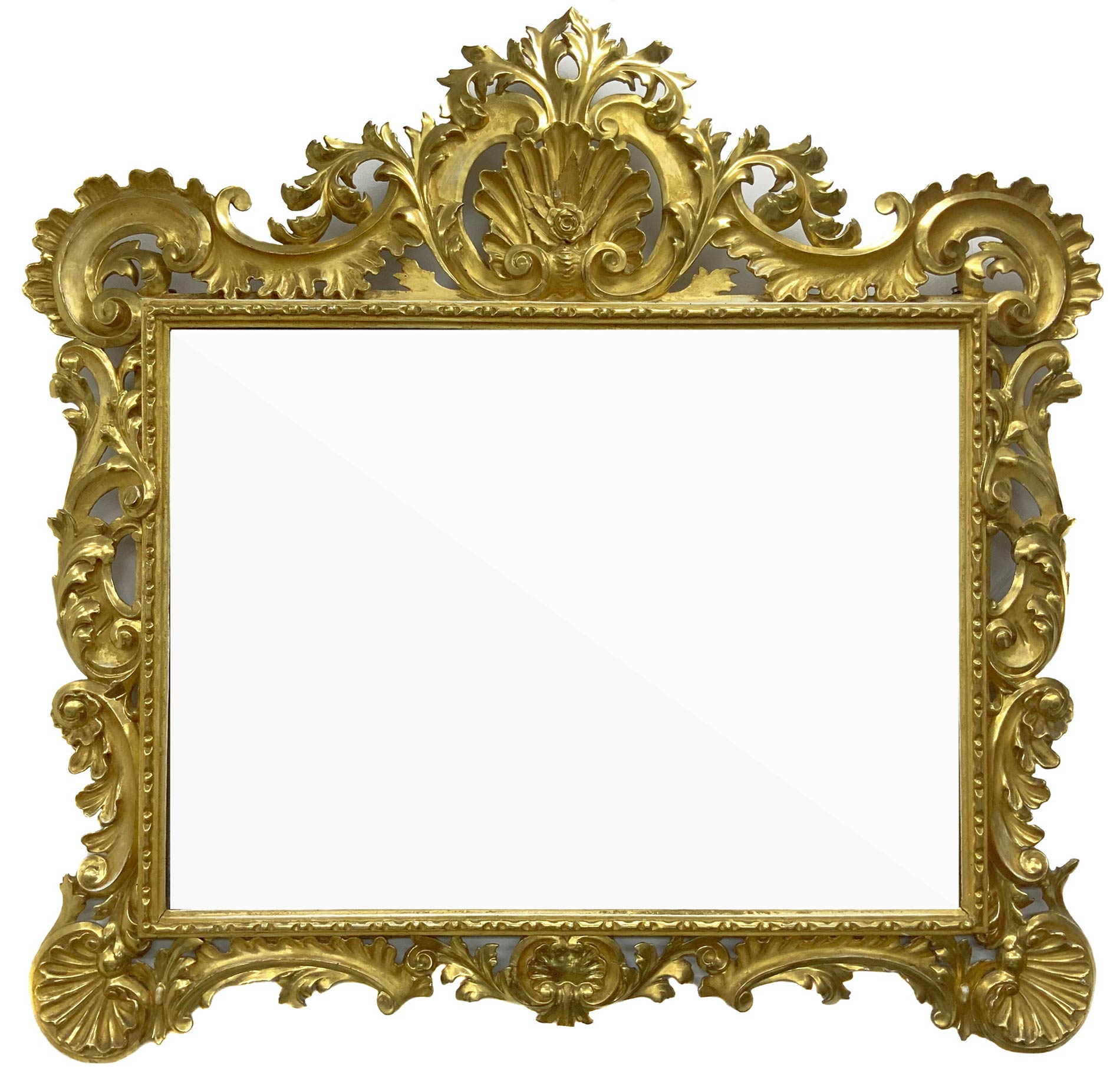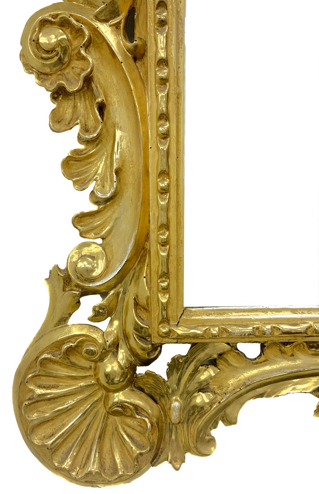 Grande ed elegante specchiera in legno dorato a foglia. Fine XVIII, inizi XIX. Palermo (Sicilia). Specchio originale al mercurio. H cm 155x166