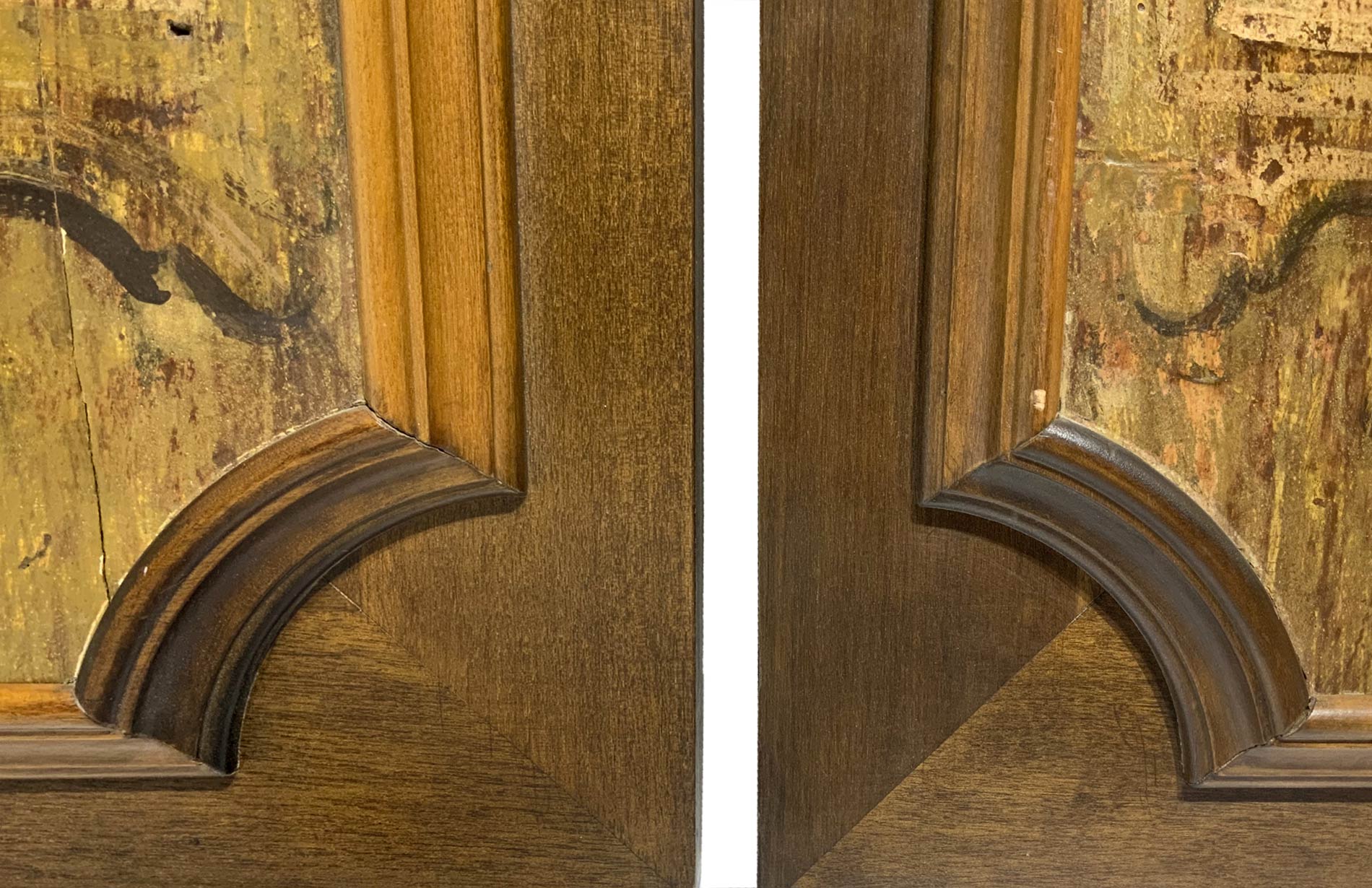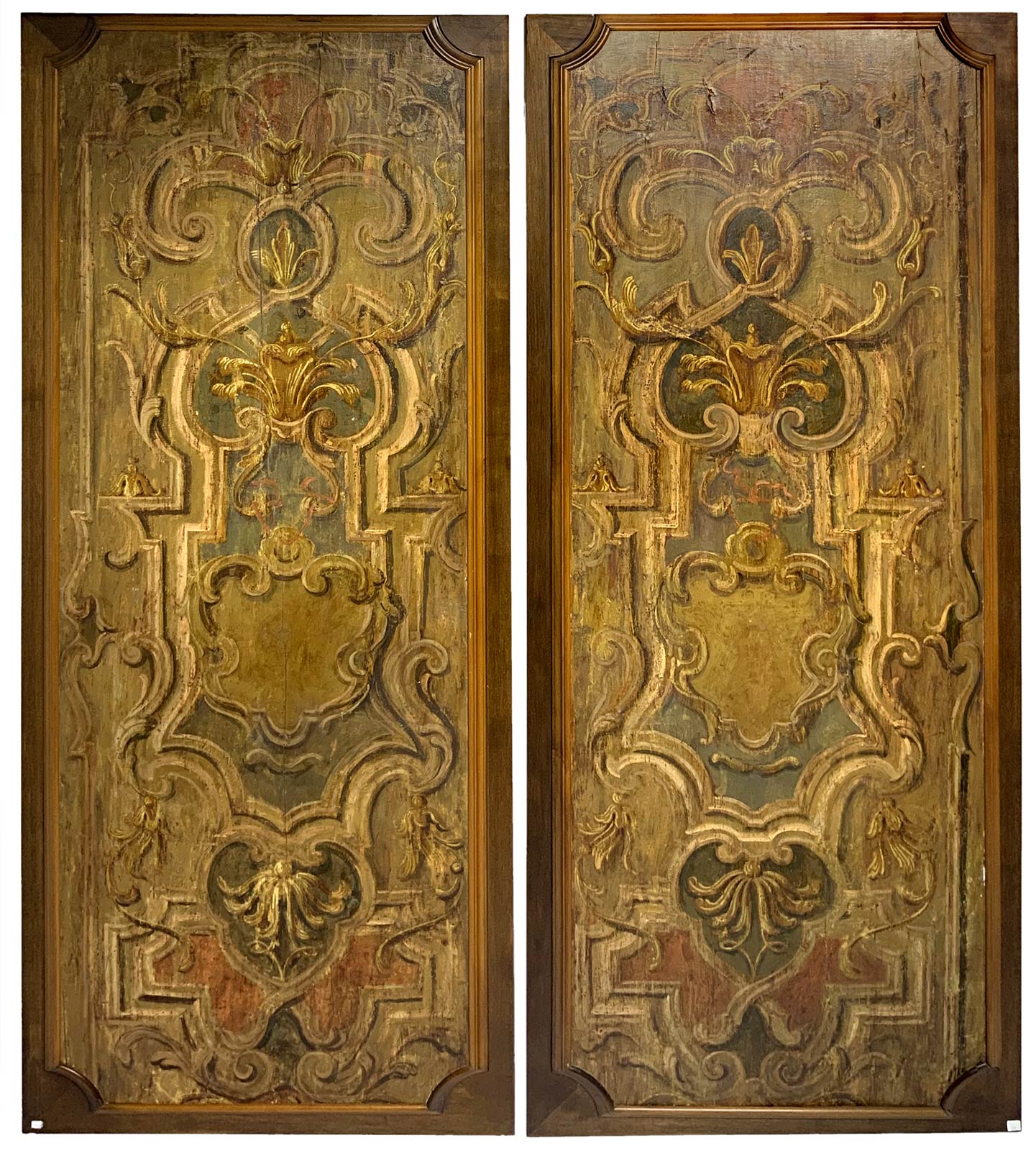 Coppia di pannelli in legno dipinti, Toscana, XVIII Secolo. Cm 190x70