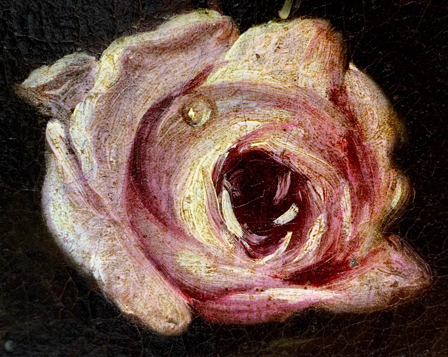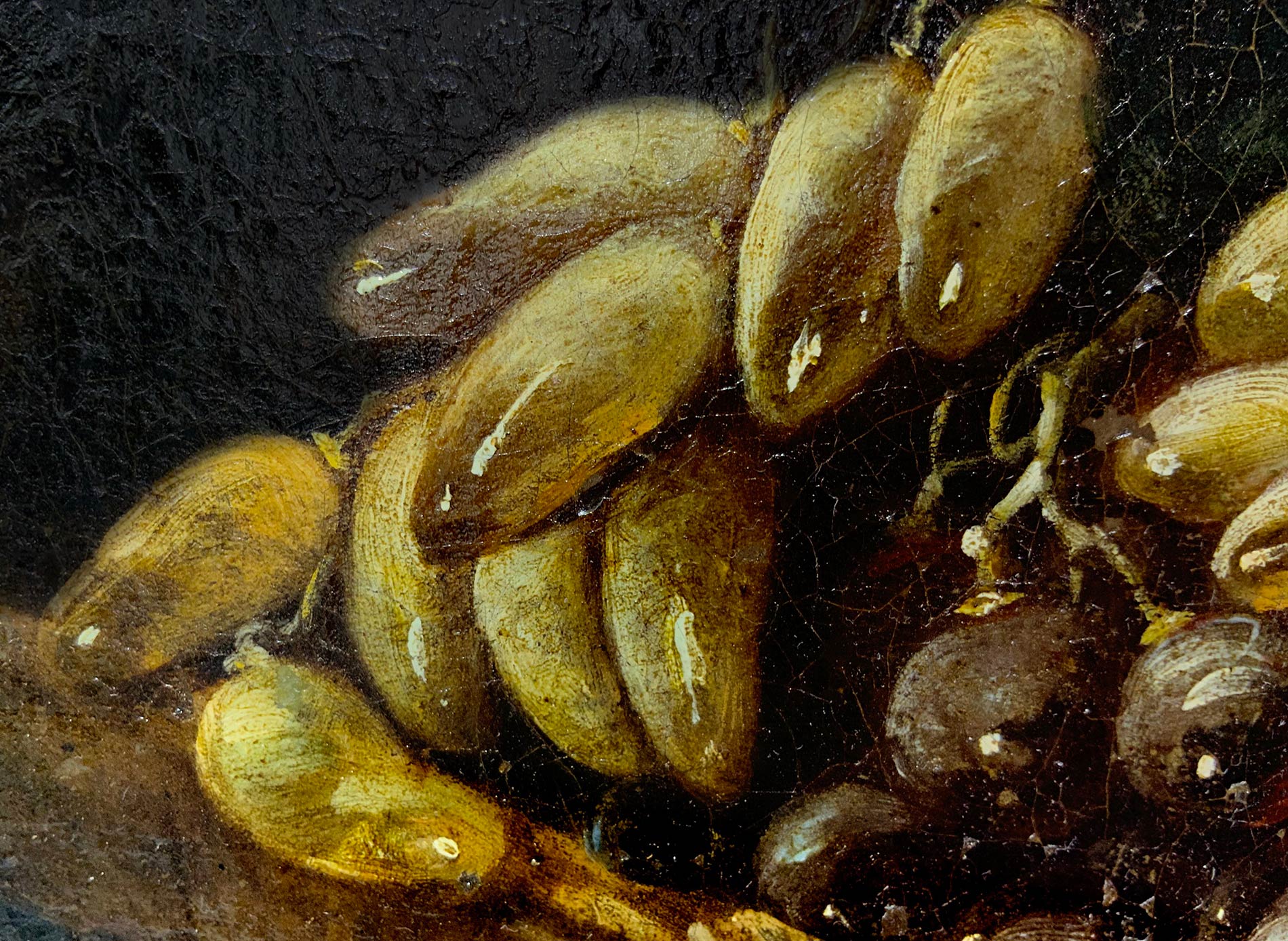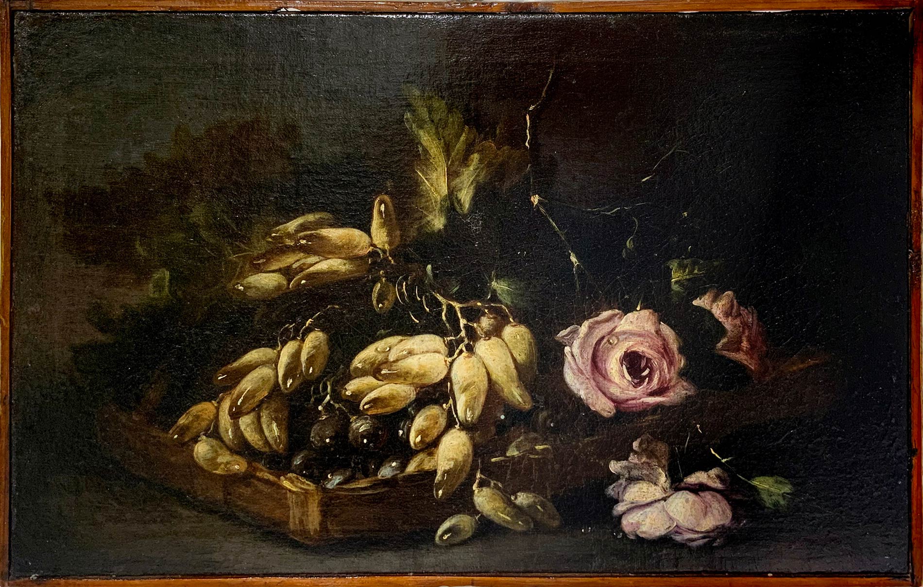 Pittore italiano del XVIII Secolo. Natura morta di uva e rose. 35x50, olio su tela. Antica collezione Notaio Cav. Fazio.
