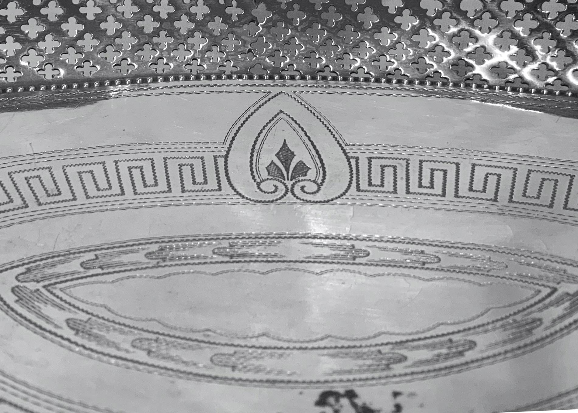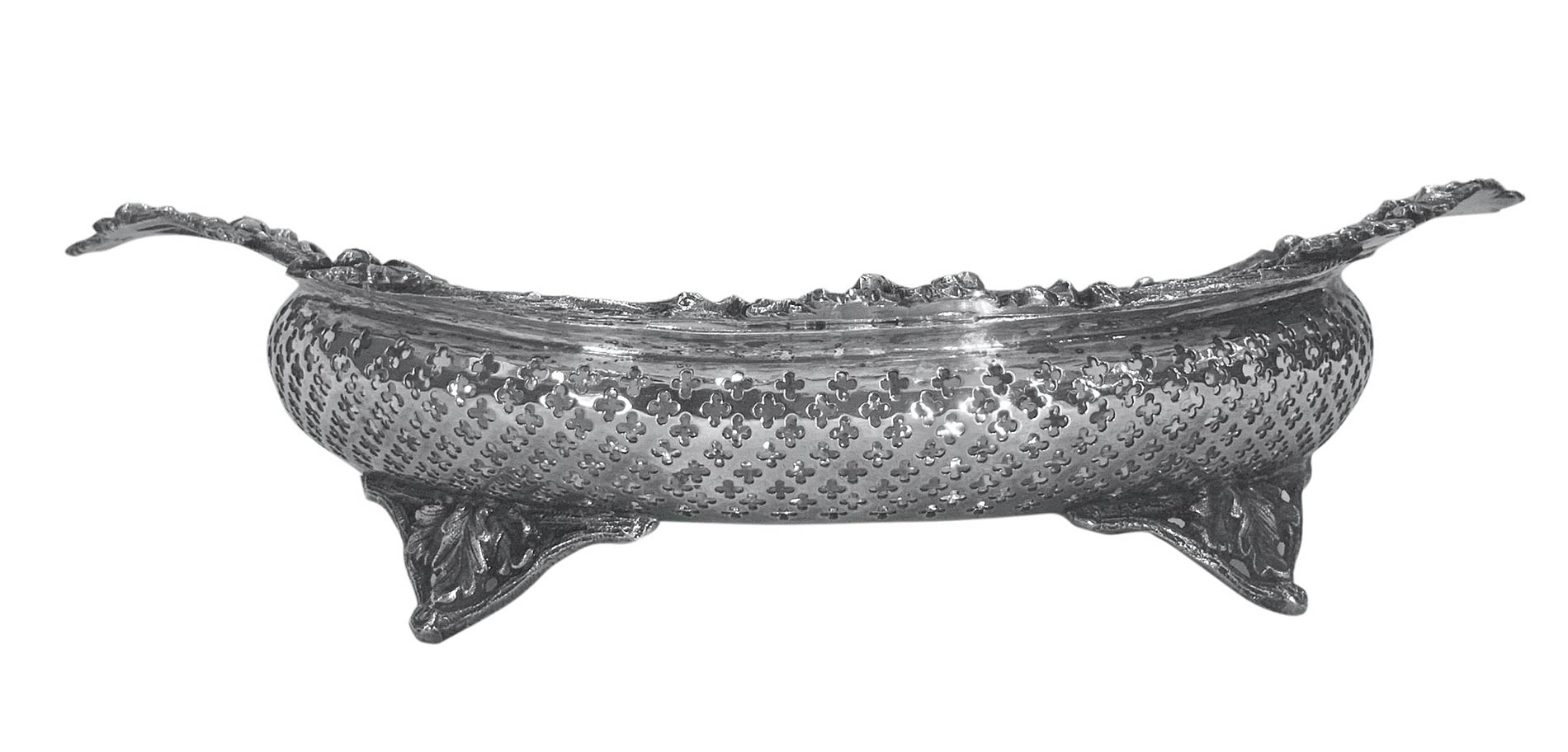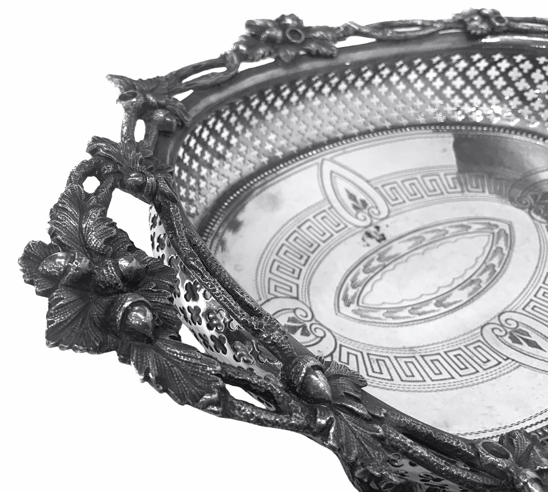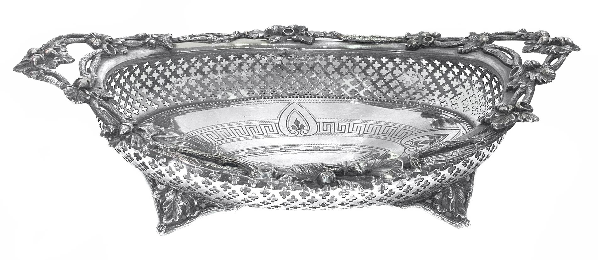 Cestino in sheffield con decori di fiori e ghiande. Cm 32x23