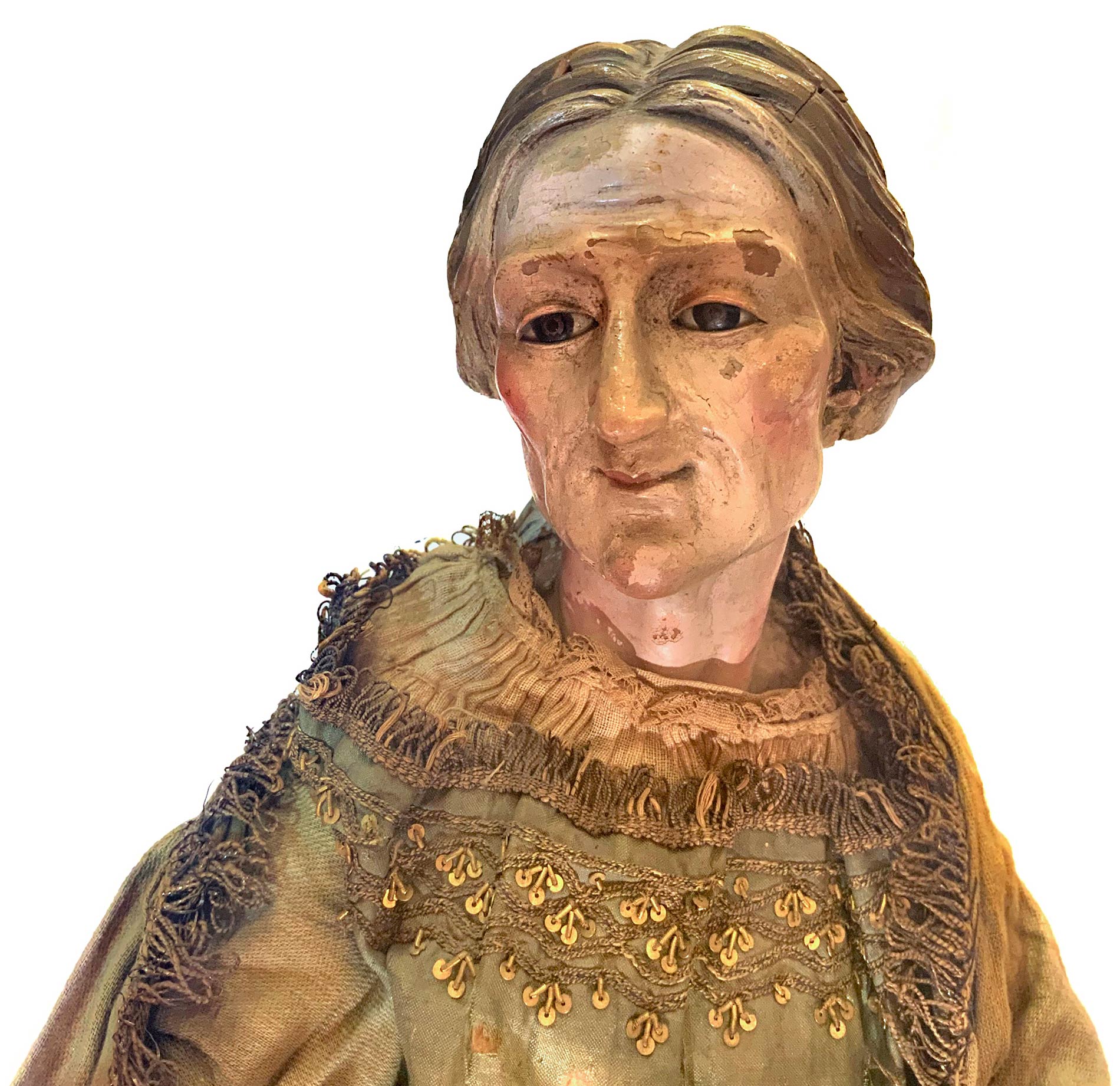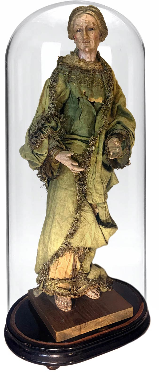Lotto 117 | Statua lignea, XIX Secolo. Sant'Anna, in teca. Statua h cm 58, con teca h cm...