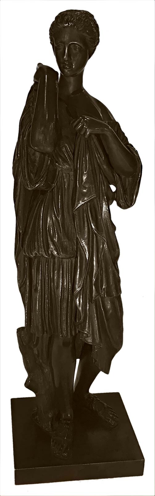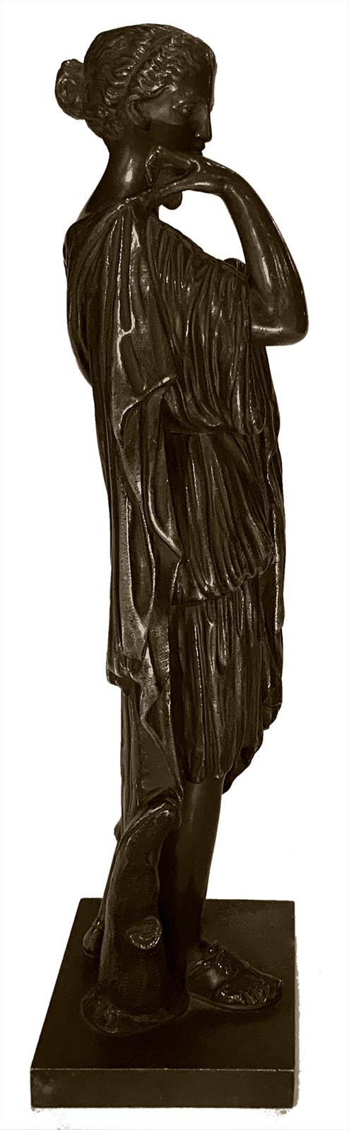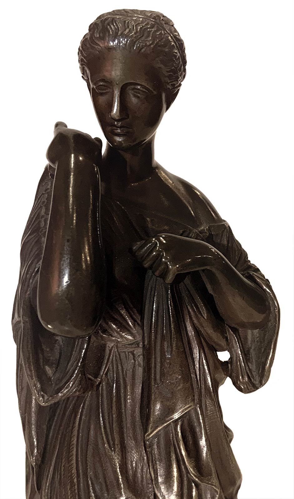 Scultore degli inizi del XIX Secolo. Bronzo patinato bruno raffigurante donna in abiti romani. H cm 30