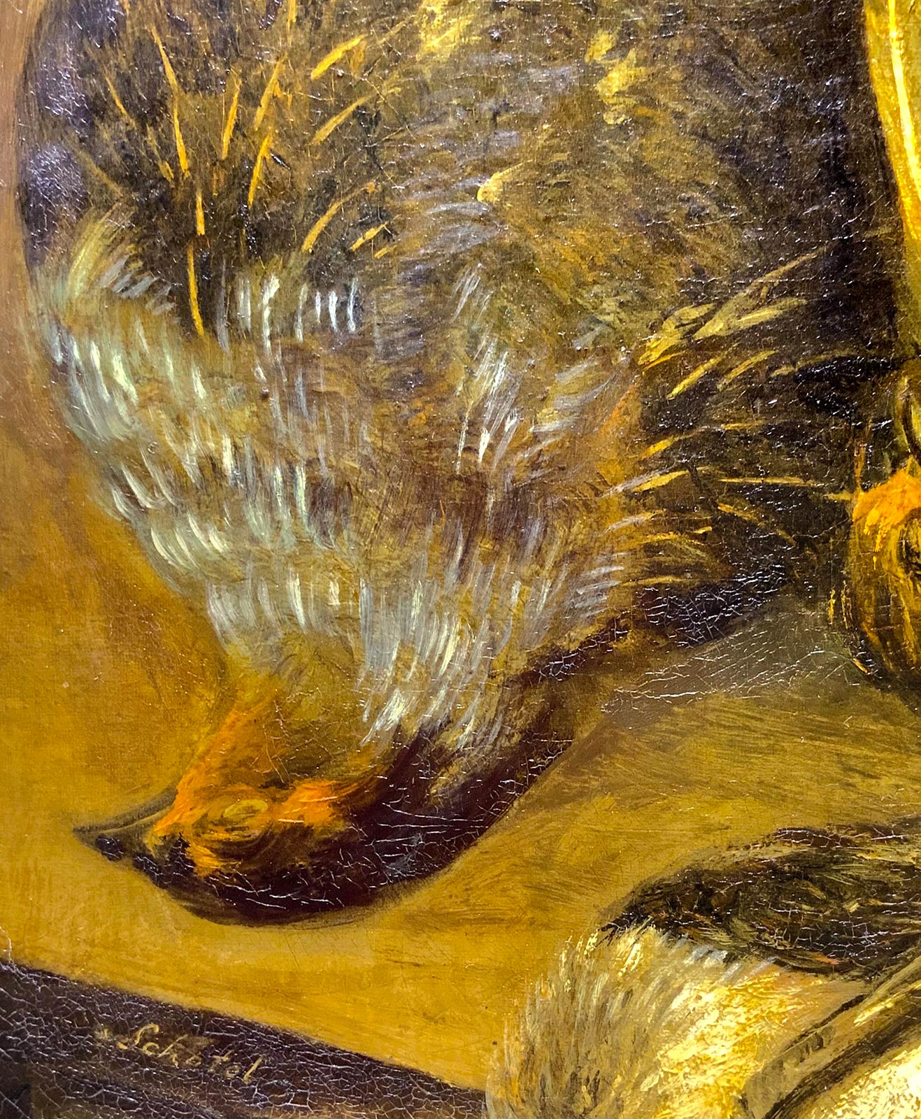 Christina Petronella Schotel (Dordrecht 1818- Aardenburg 1854). Natura morta di cacciagione. 73x60, olio su tela. Firmato in basso a sinistra.
