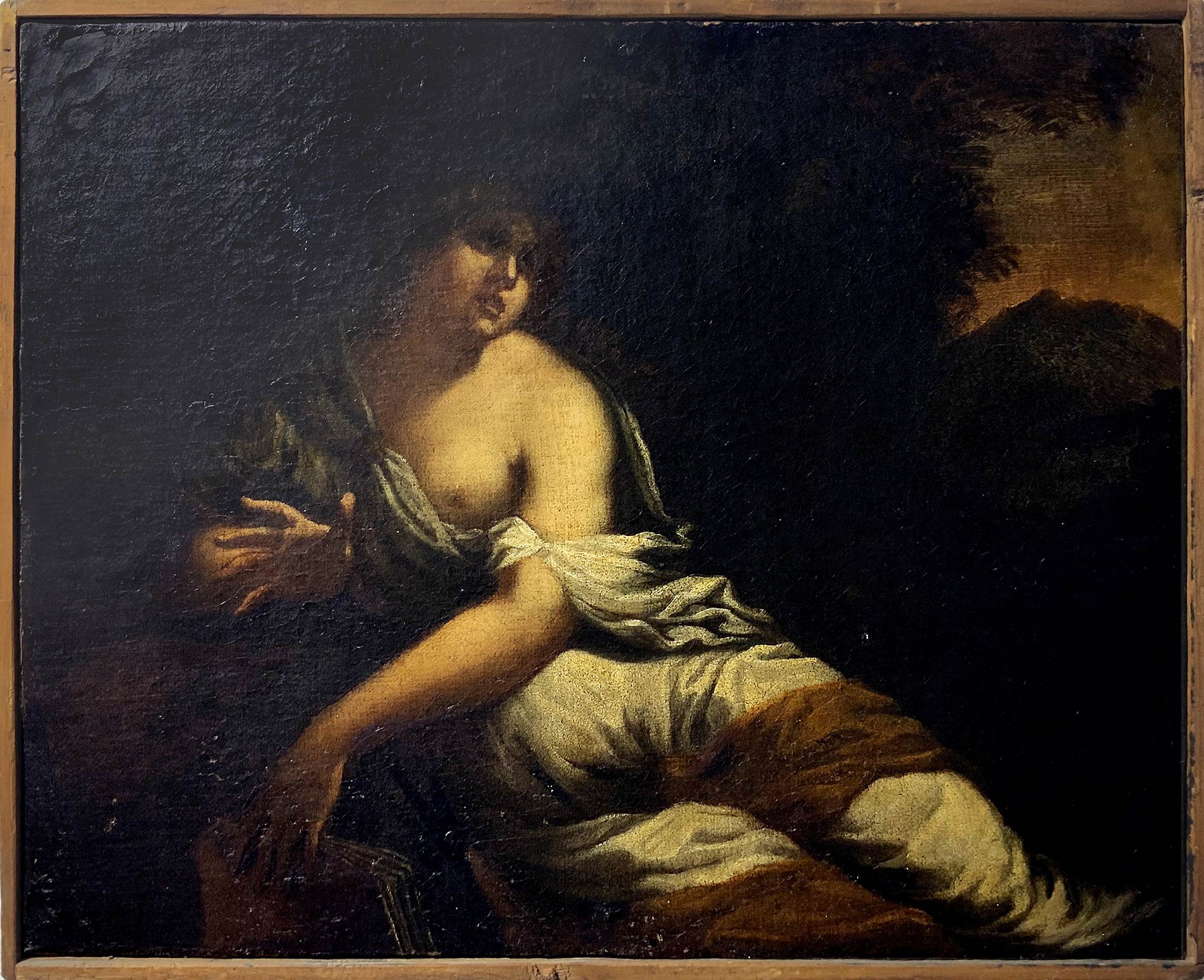 Amb. Veneto-emiliano, Secolo XVII. Figura femminile con libro, Allegoria della filosofia. 32x39. Opera dichiarata d'interesse culturale ai sensi dell'art. 13 del D. Lgs 42/2004, l'acquisto è subordinato all'esercizio della prelazione da parte della Soprintendenza BB.CC.AA.