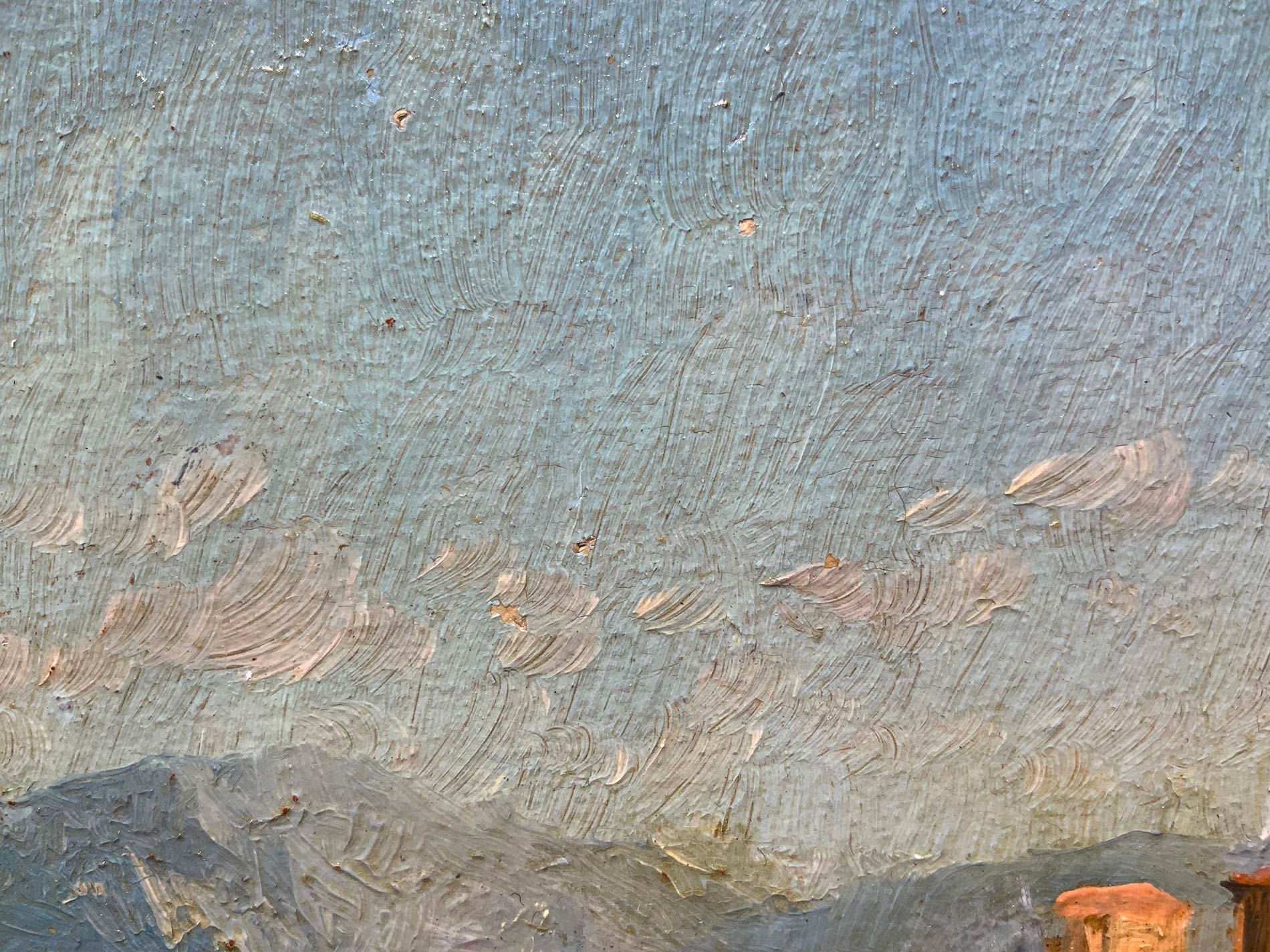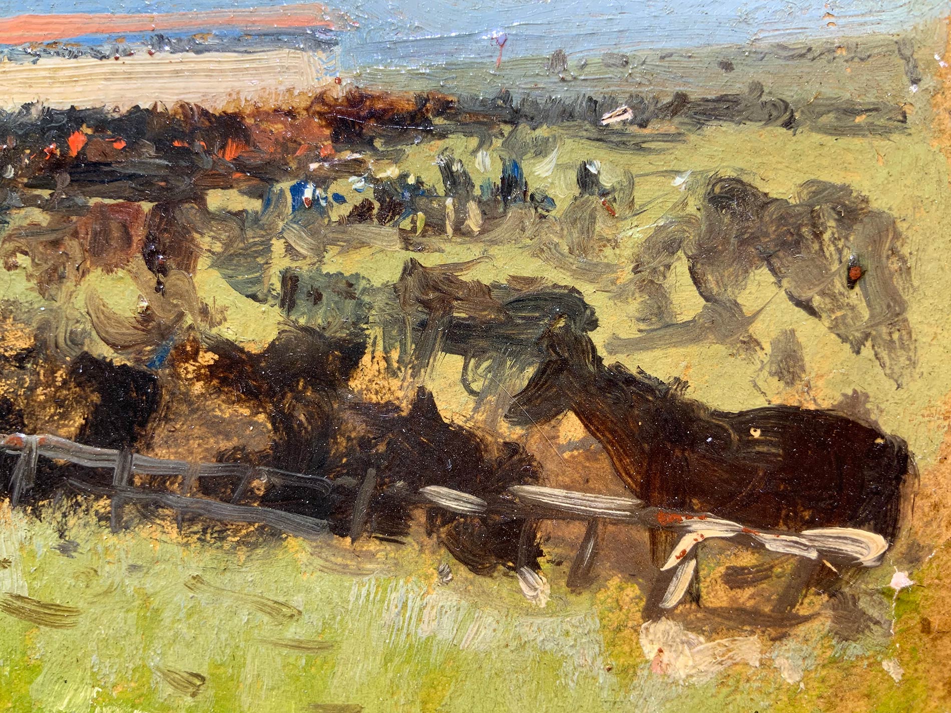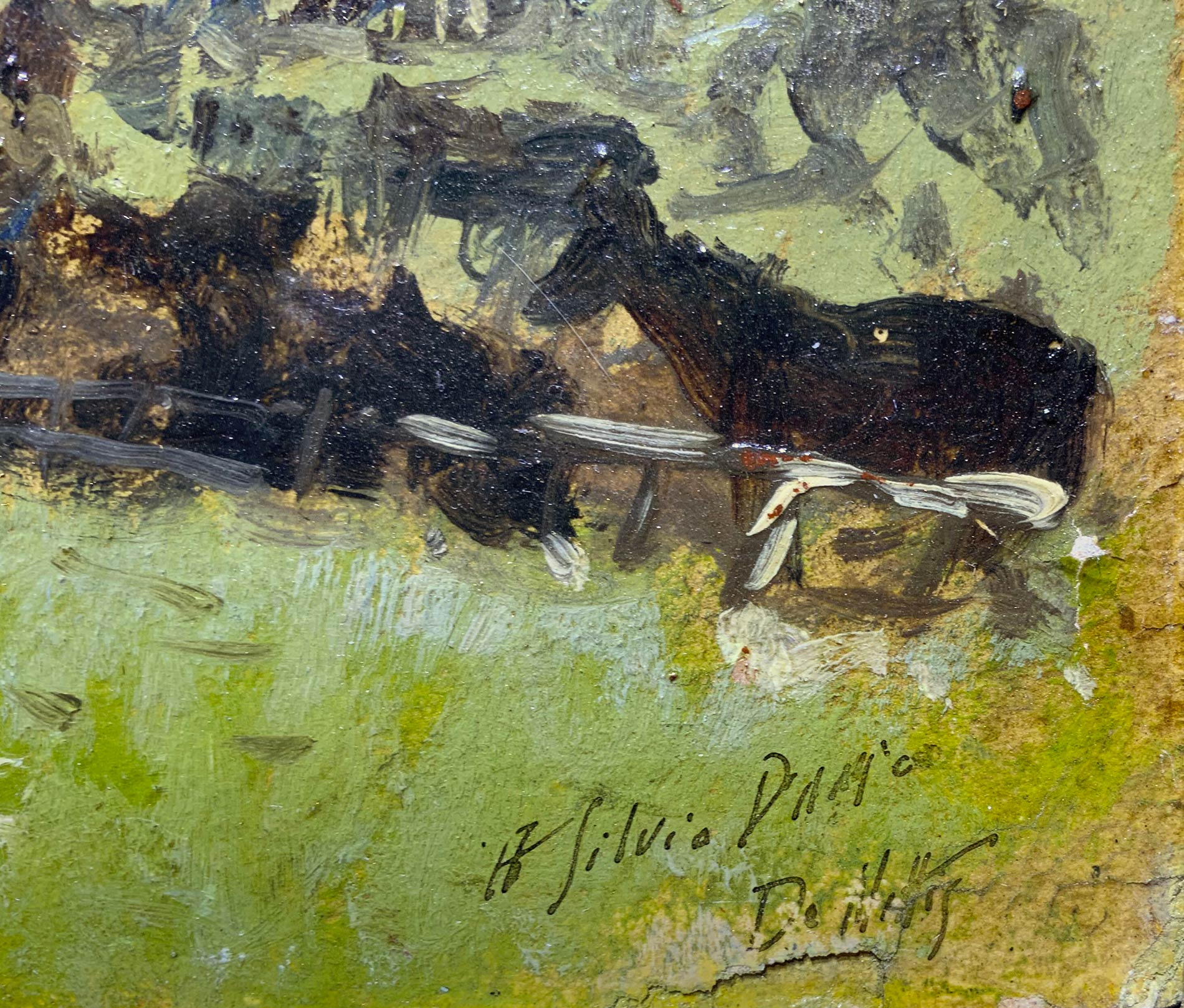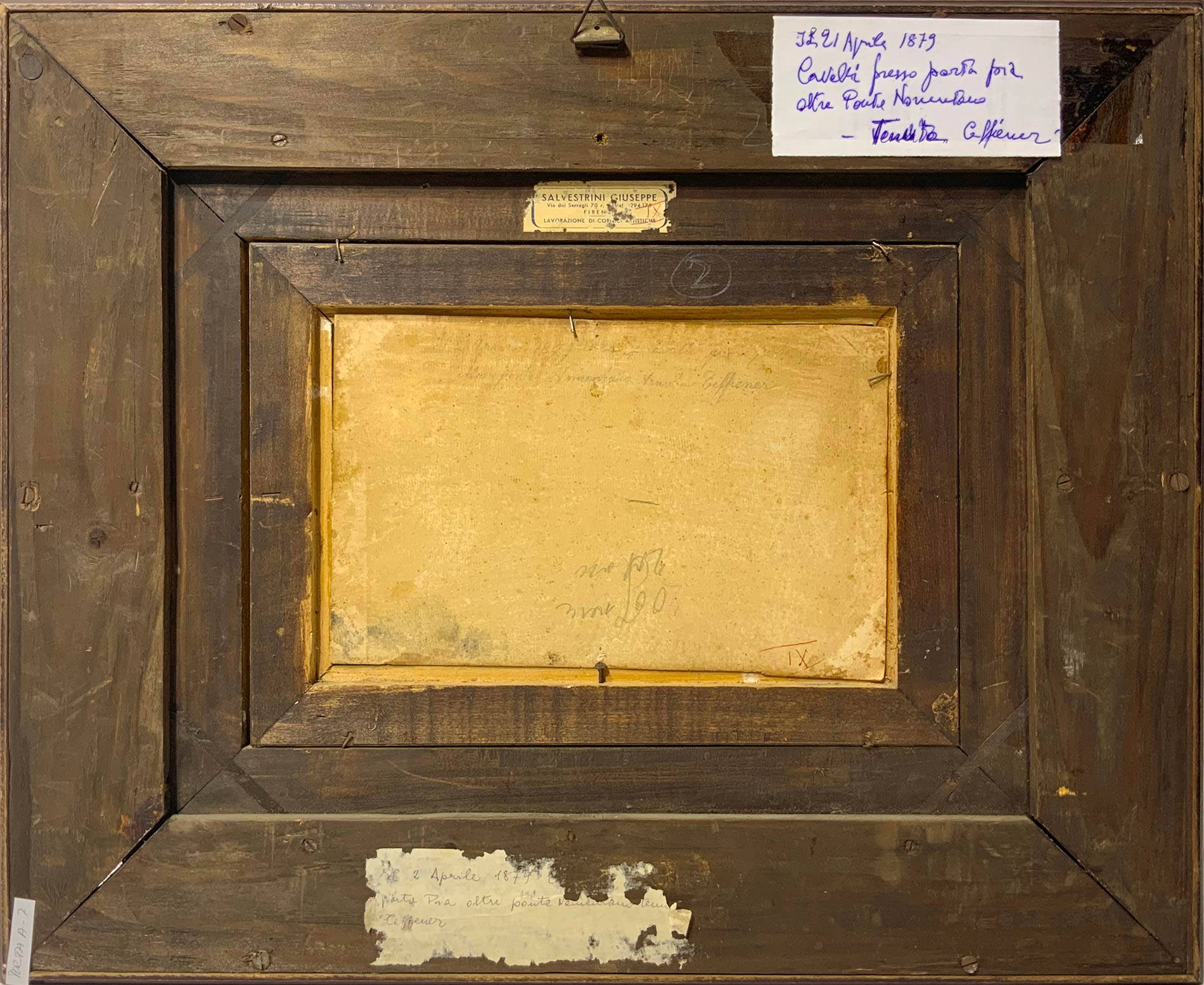Pittore italiano del XIX secolo. Accampamento militare. 15,5x24, olio su cartone. Firmato De Nittis in basso a destra e dedicato. Datato sul retro 21 Aprile 1879.