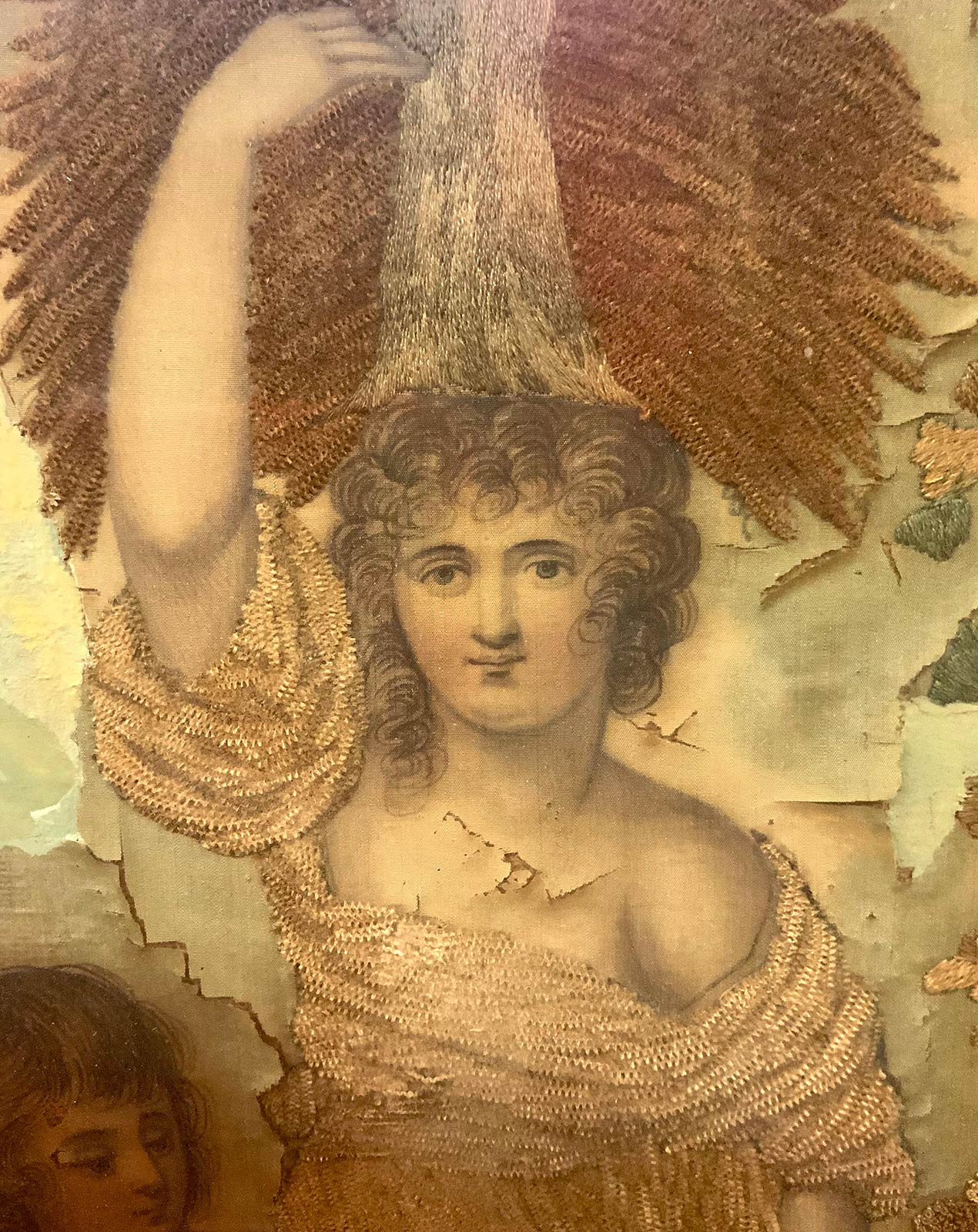 Pittore del XIX Secolo. Allegoria bucolica. 45x40, tecnica mista con parti ricamate