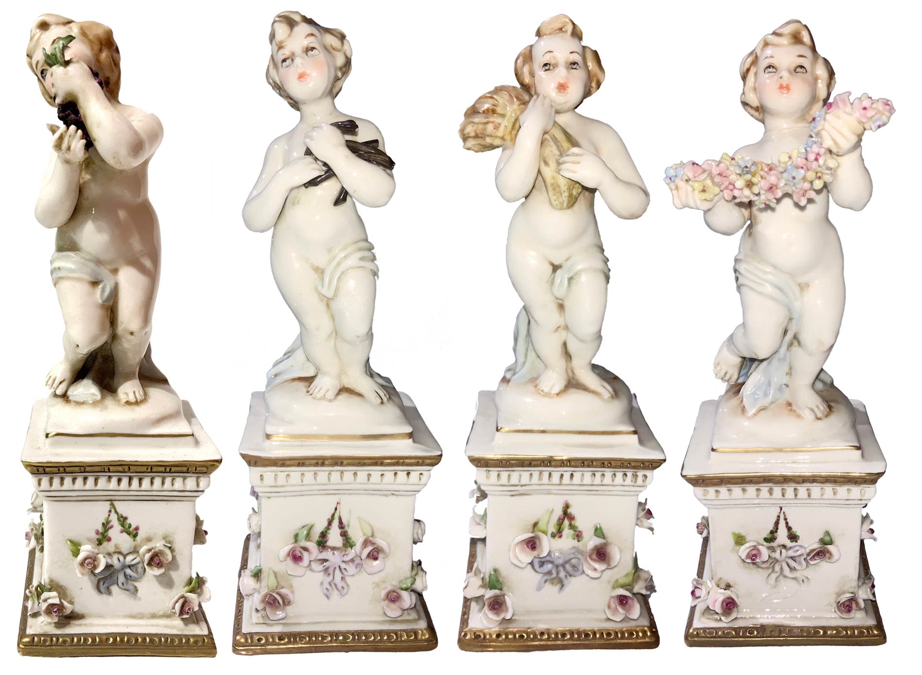4 statuette in porcellana di Capodimonte. 4 stagioni. H Cm 19. Base Cm 6x6....