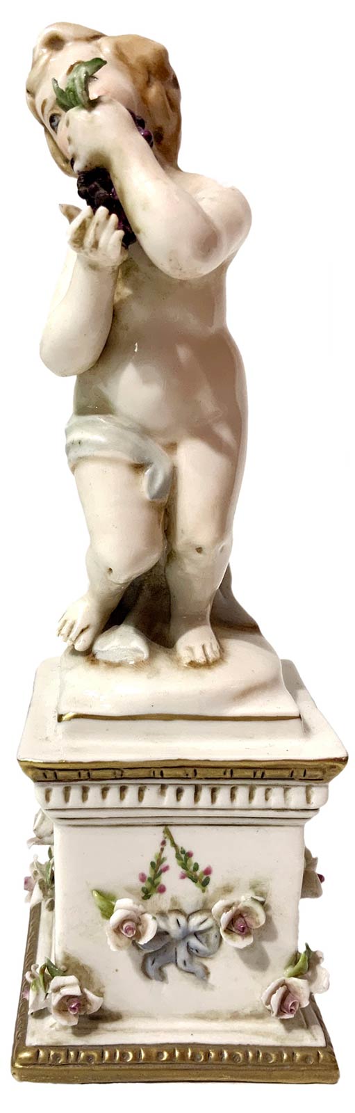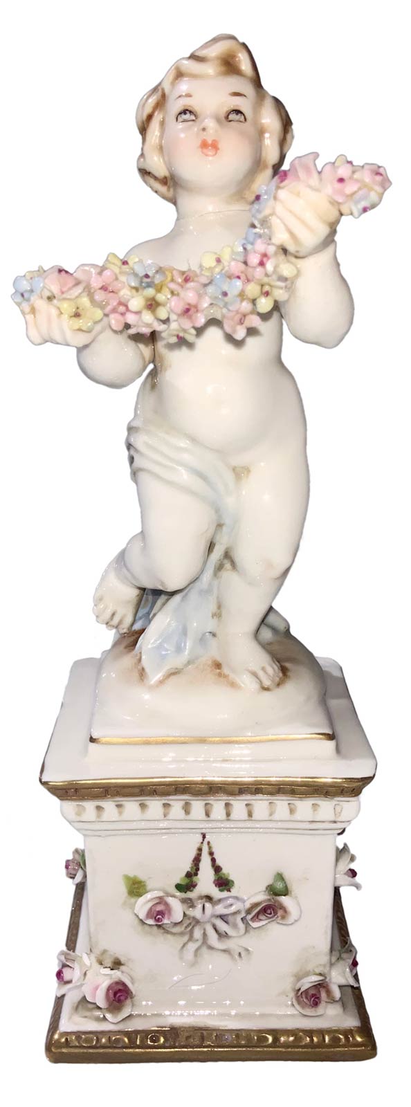 4 statuette in porcellana di Capodimonte. 4 stagioni. H Cm 19. Base Cm 6x6. Piccole sbeccature.