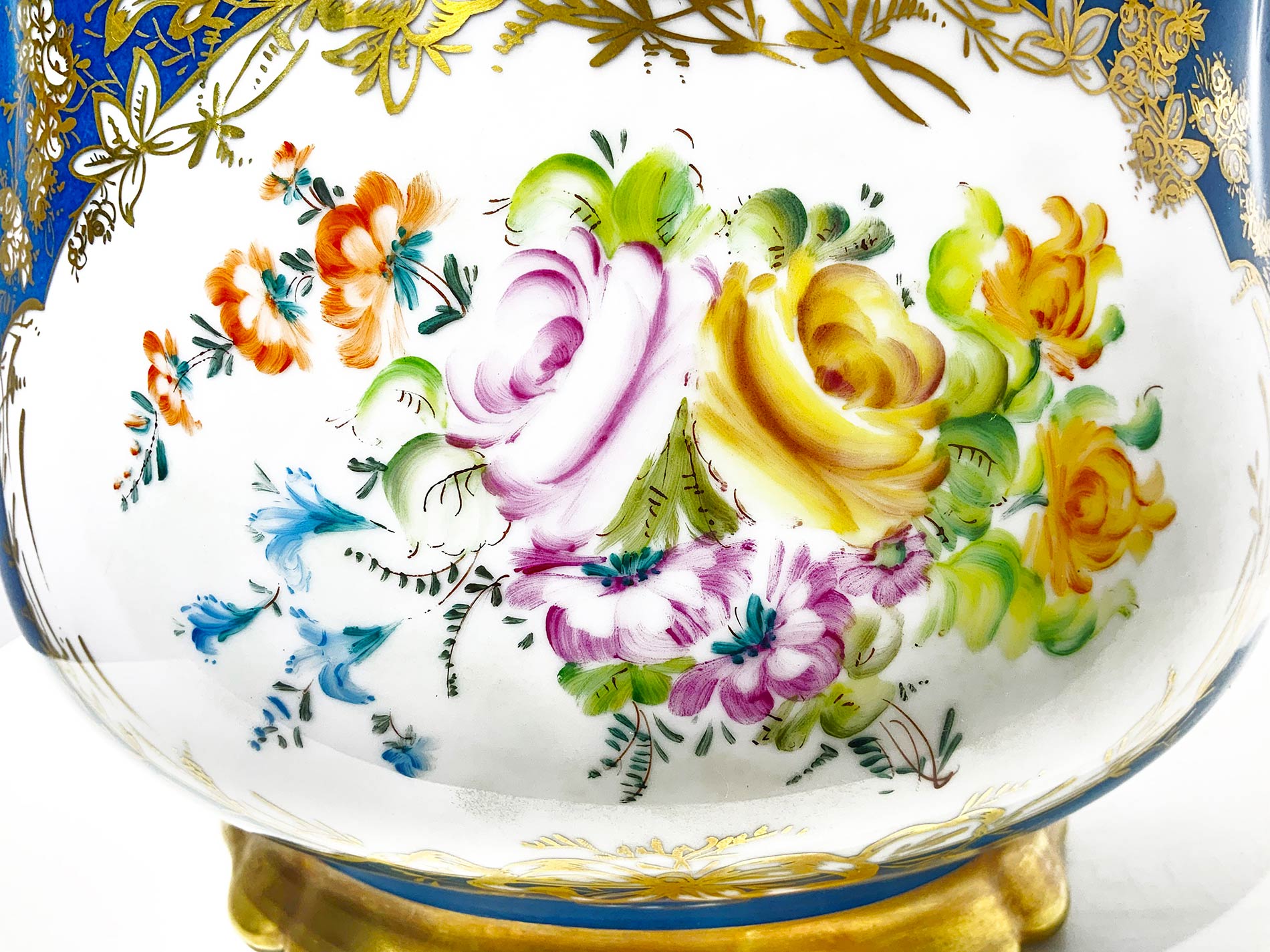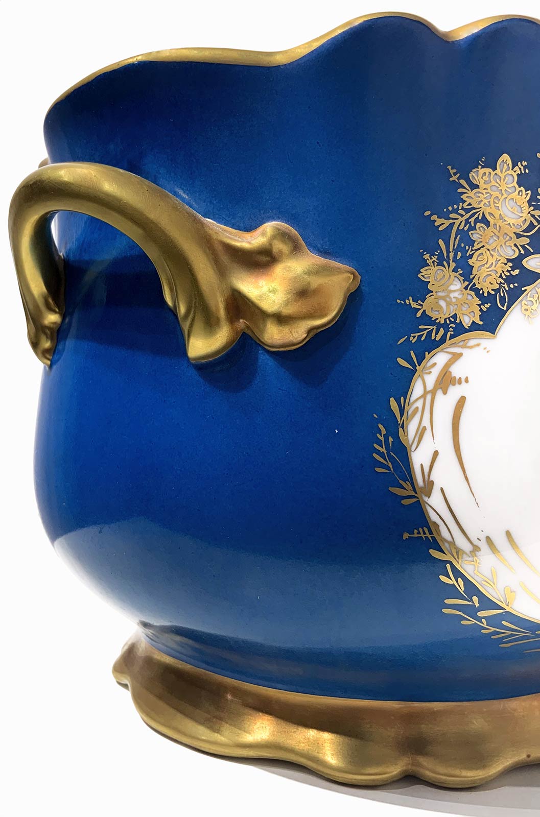 Limoges, Francia. Cachepot nei toni del blu e dorato. Dipinto a mano. Bocca cm 26, h cm 19