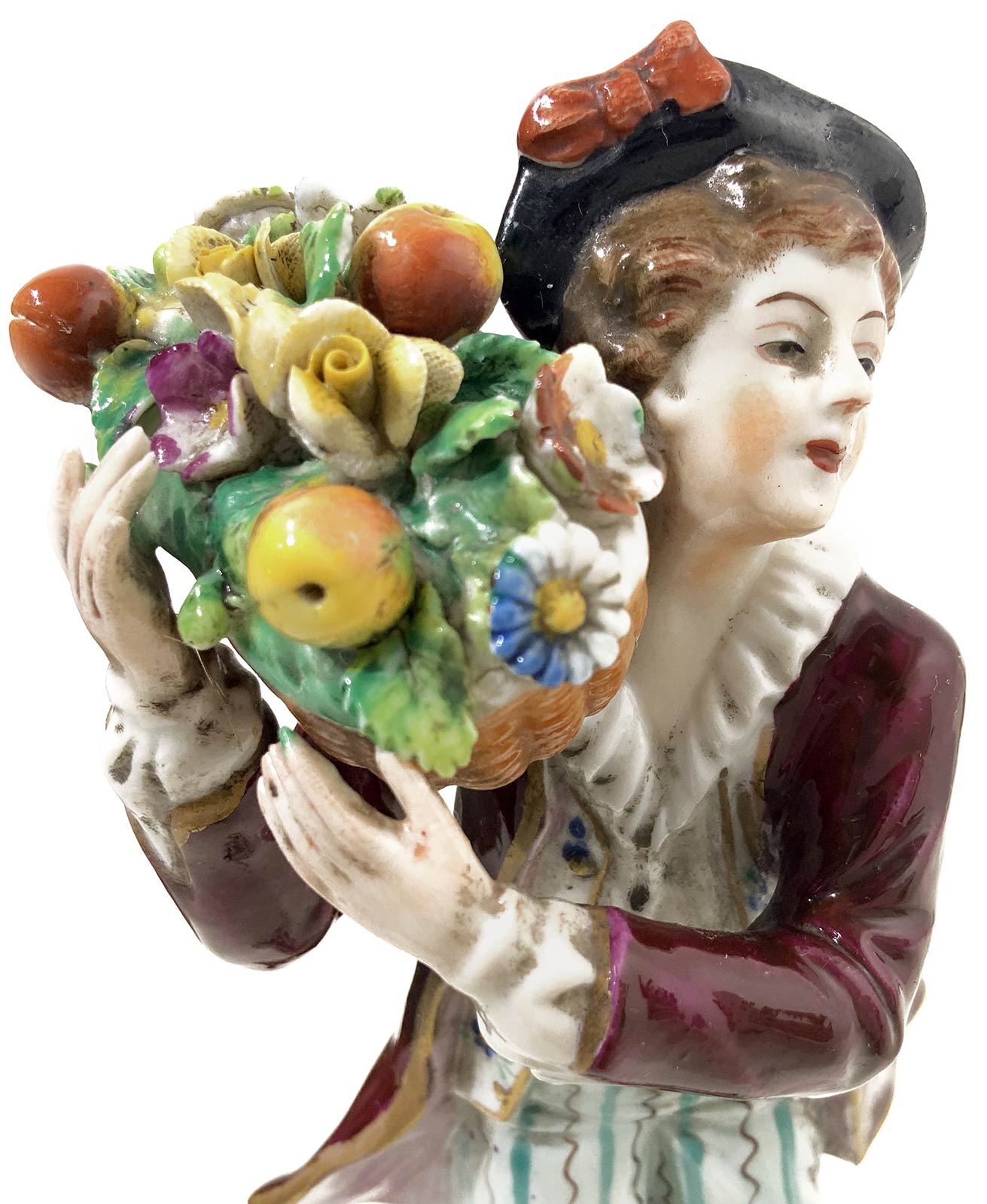 Coppia di statuette in porcellana di Capodimonte, XX Secolo. Giovani pastori. H cm 20, cm19