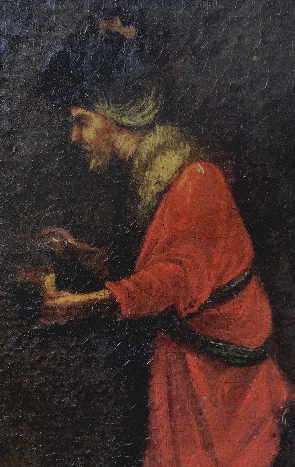 Ambito di Cornelio Brusco (attivo a Napoli 1588 ca-1635 ca), XVII Secolo. Adorazione dei magi. 46,5x52,5, olio su tela. Opera dichiarata d'interesse culturale ai sensi dell'art. 13 del D. Lgs 42/2004, l'acquisto è subordinato all'esercizio della prelazione da parte della Soprintendenza BB.CC.AA.