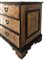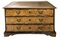 Cassettone, XVIII secolo. In radica sul fronte dei cassetti, piedi a mensola...