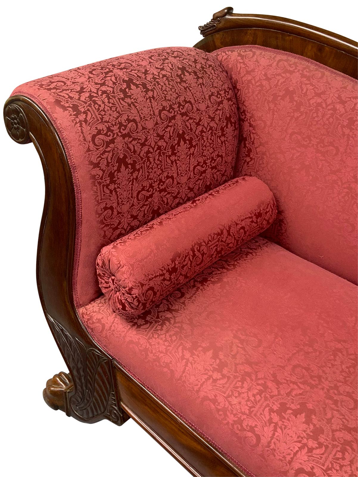 Divano in legno di mogano, prima metà XIX Secolo. H cm 96x210x65....