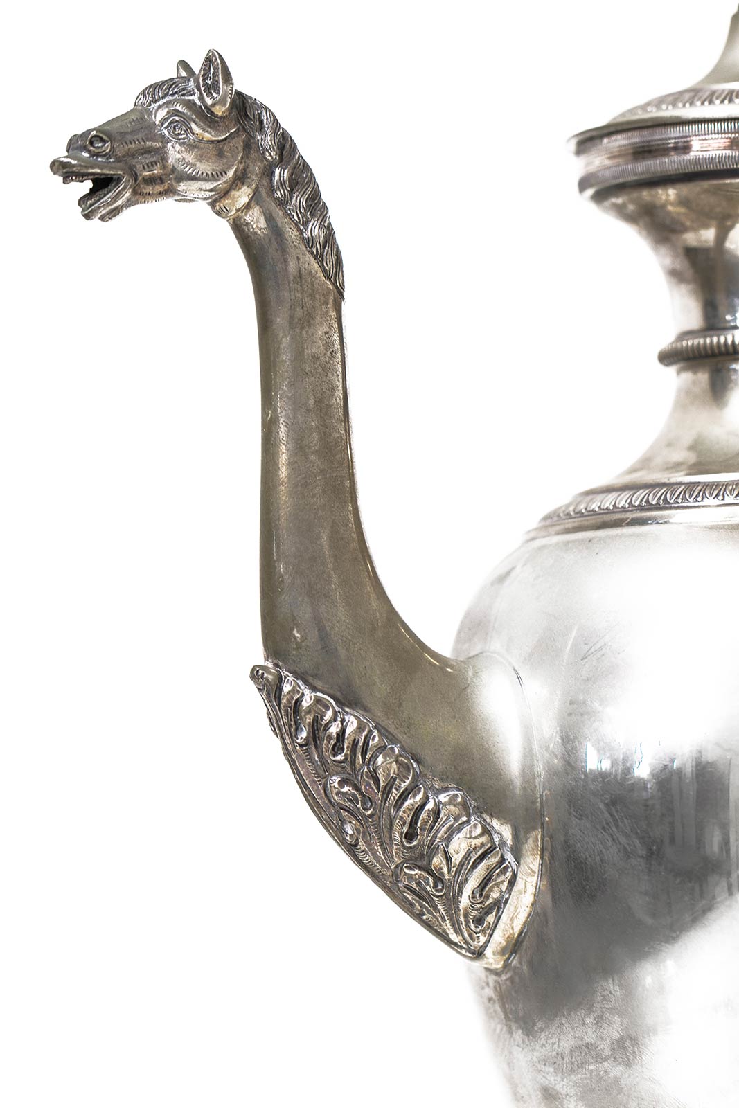 Teiera in argento 800 con versatoio in forma di testa equina - manico in...