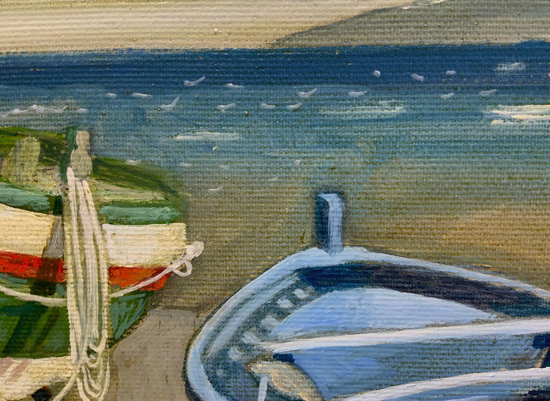 Saro Tricomi (Catania, 1937). Barche sulla spiaggia 35x50, olio su tela. Firmato in basso a sinistra. Datato 2017 e firmato sul retro.