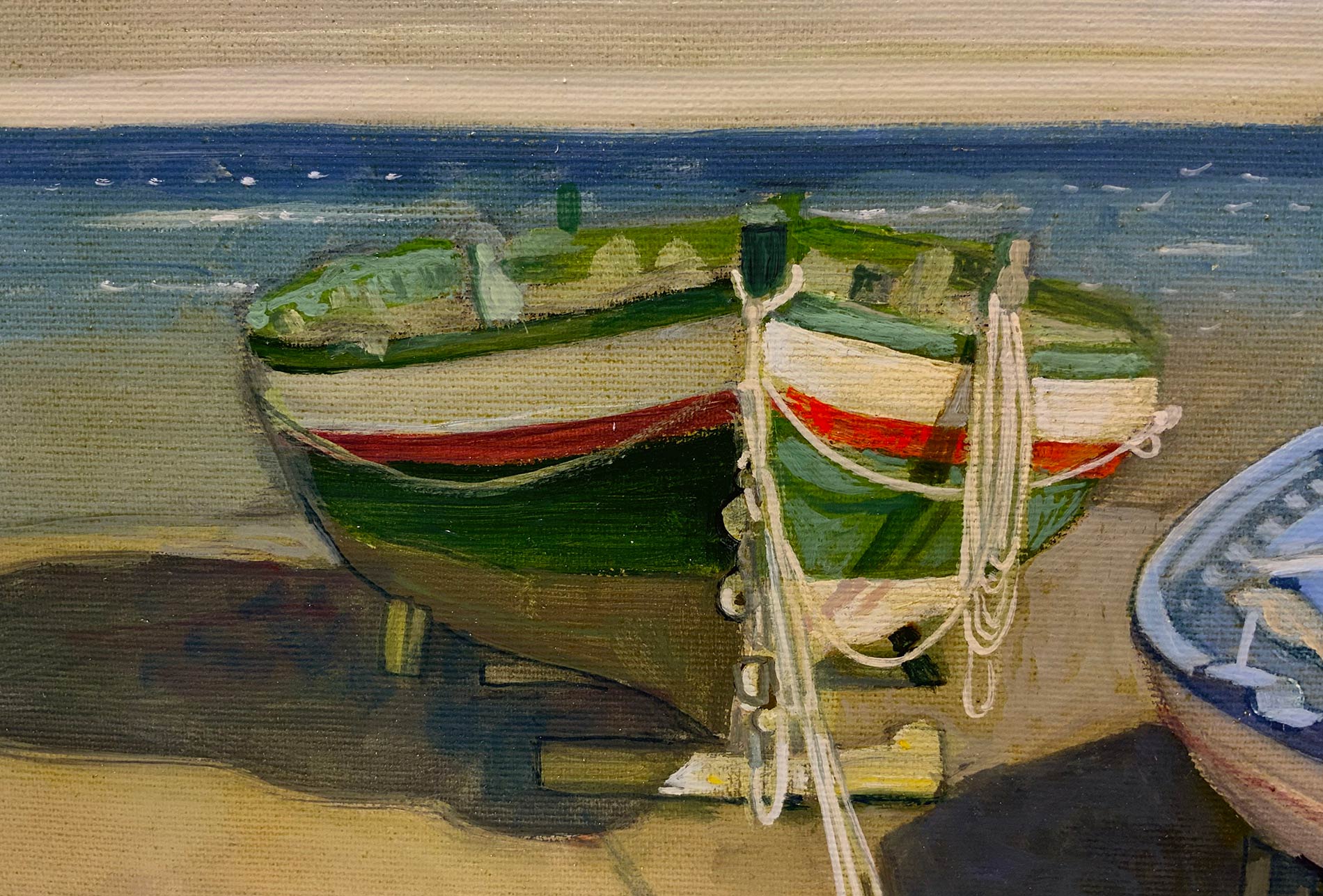 Saro Tricomi (Catania, 1937). Barche sulla spiaggia 35x50, olio su tela....