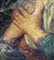 Pittore italiano del XVIII Secolo. Donna in preghiera. 60x46, olio su tela. Antica collezione Notaio Cav. Fazio. Superficie del dipinto risulta interessata dalla presenza di uno strato di vernice ossidata e ingiallita.