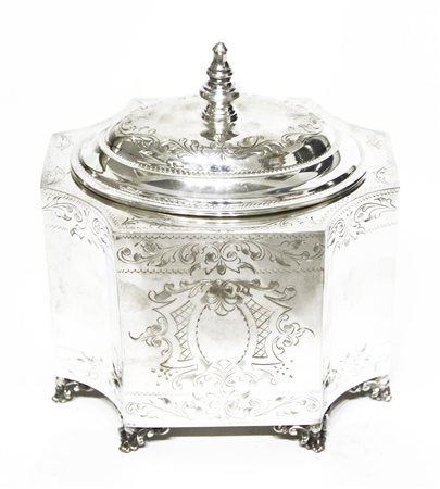 Scatola in argento 800 finemente lavorata ed incisa a mano. Kg 0,487. H Cm 16. Cm 12x14