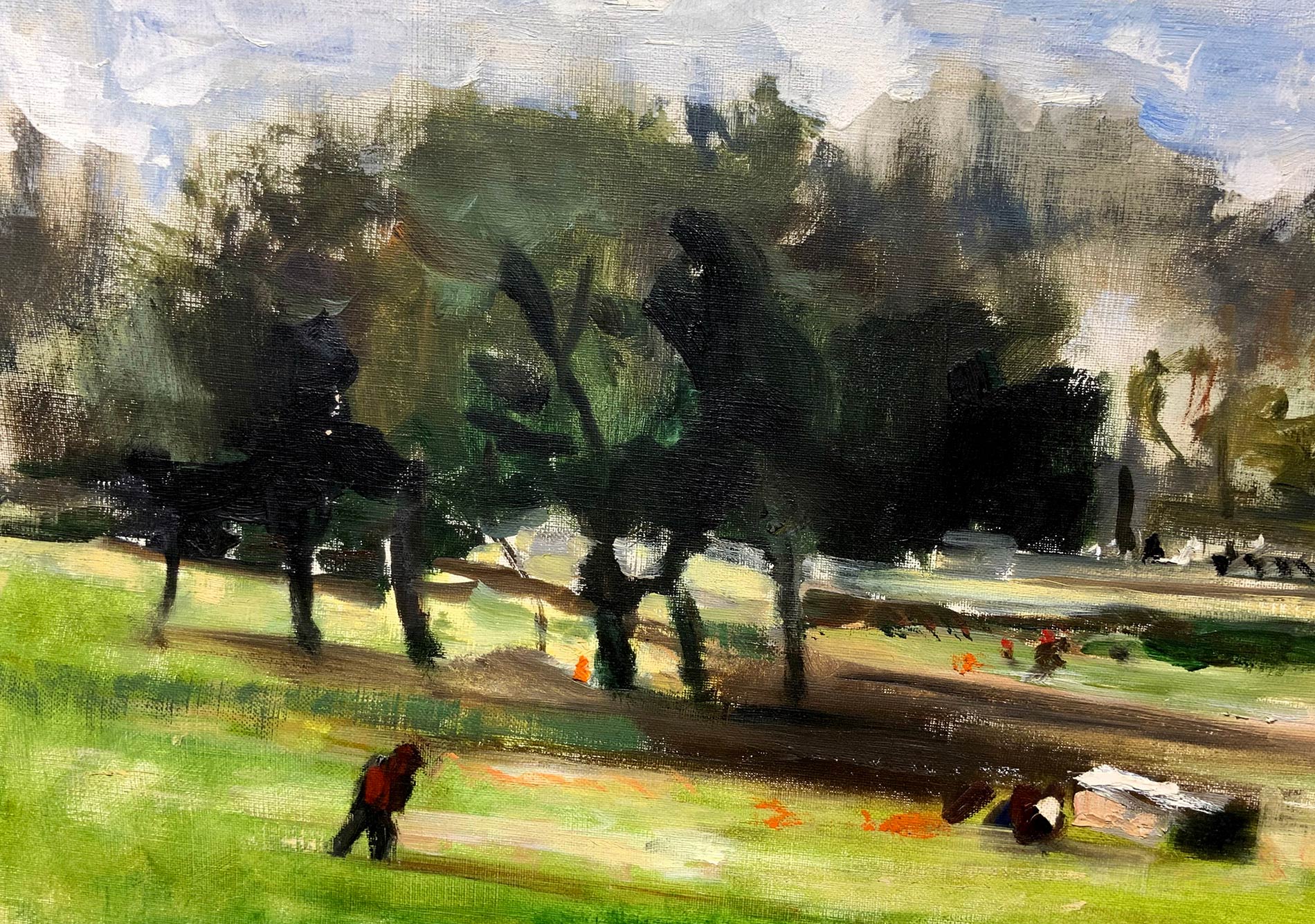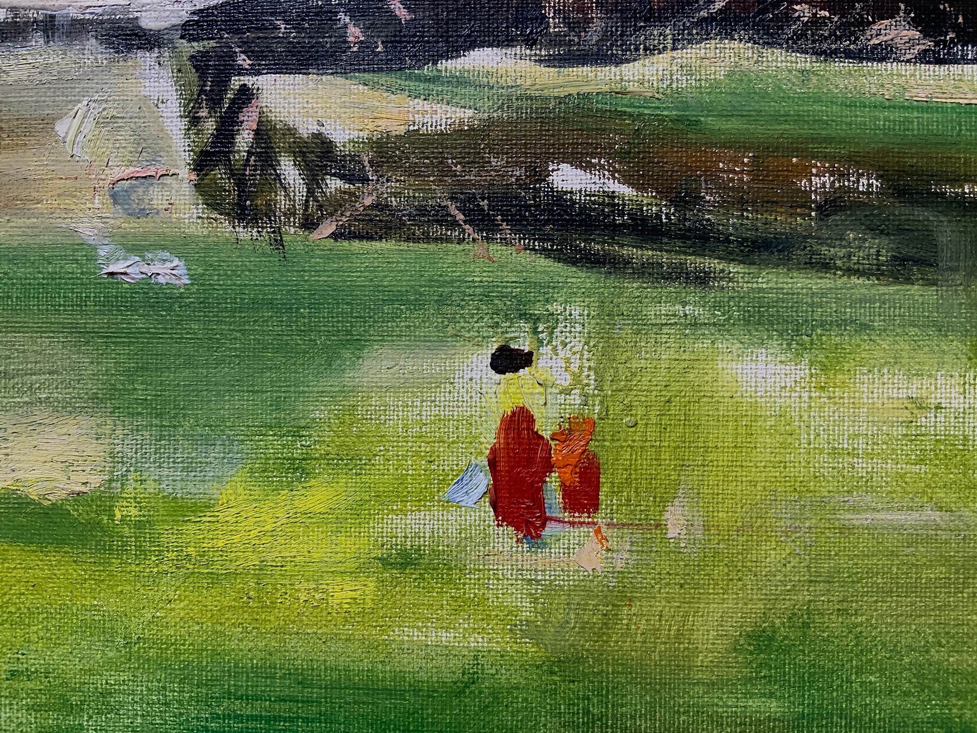 Ugo Attardi (1923, Genova-2006, Roma). Paesaggio campestre. 48x92, olio su tela. Firmato in basso a destra. Autentica dell’artista su foto.