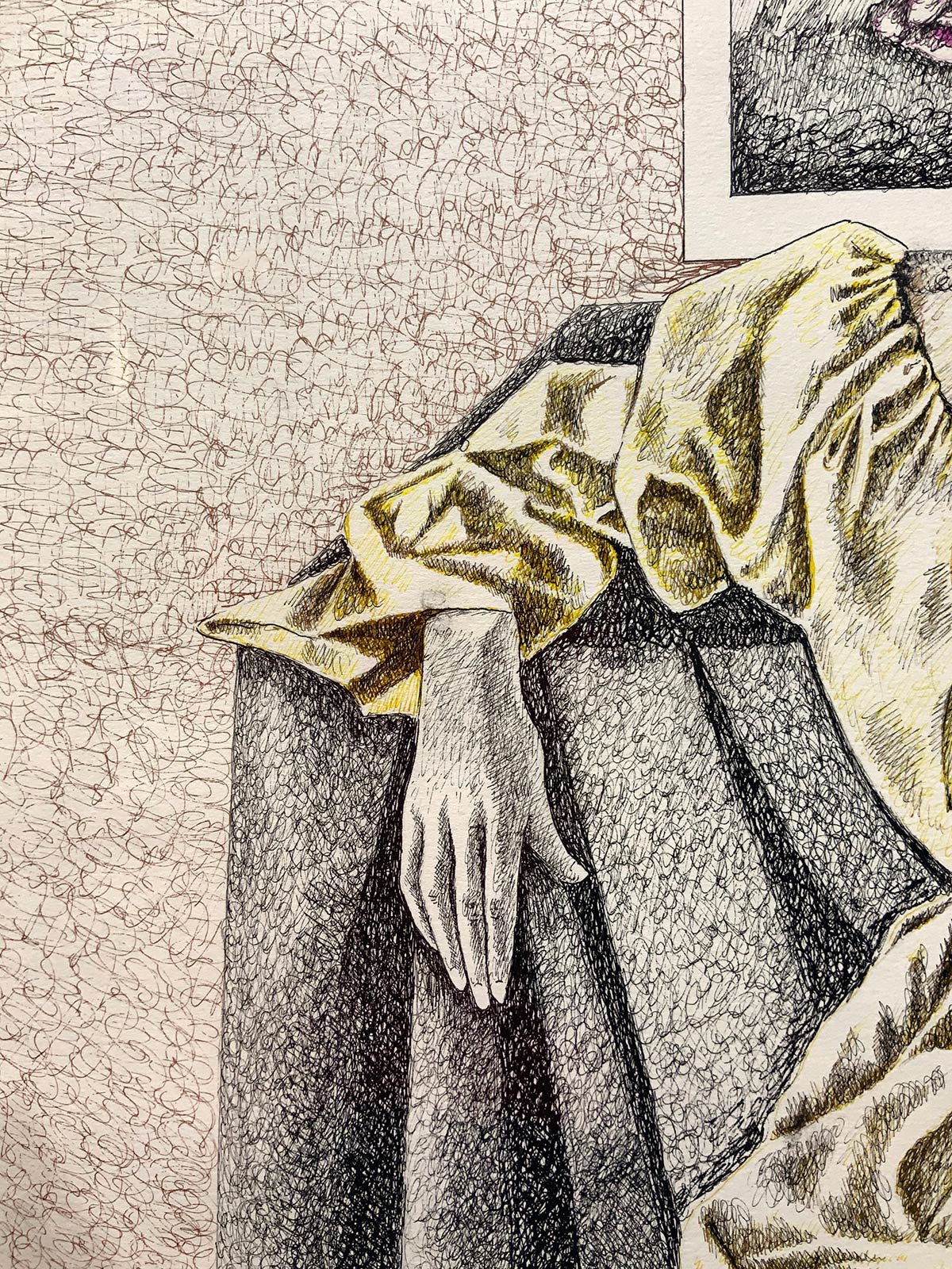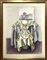 Donna con natura morta di fiori. 88x65, disegno colorato a china. Firmato e...