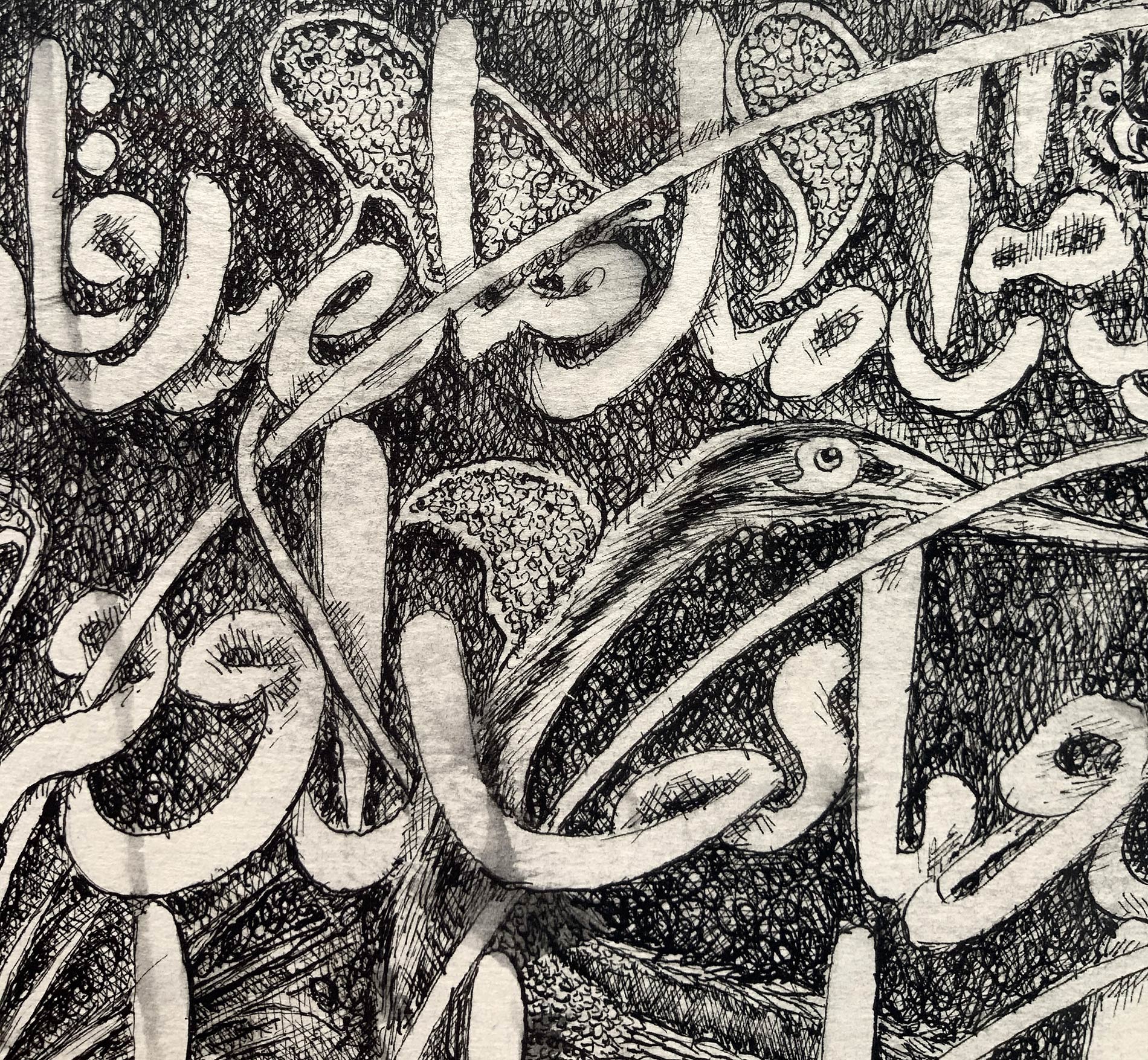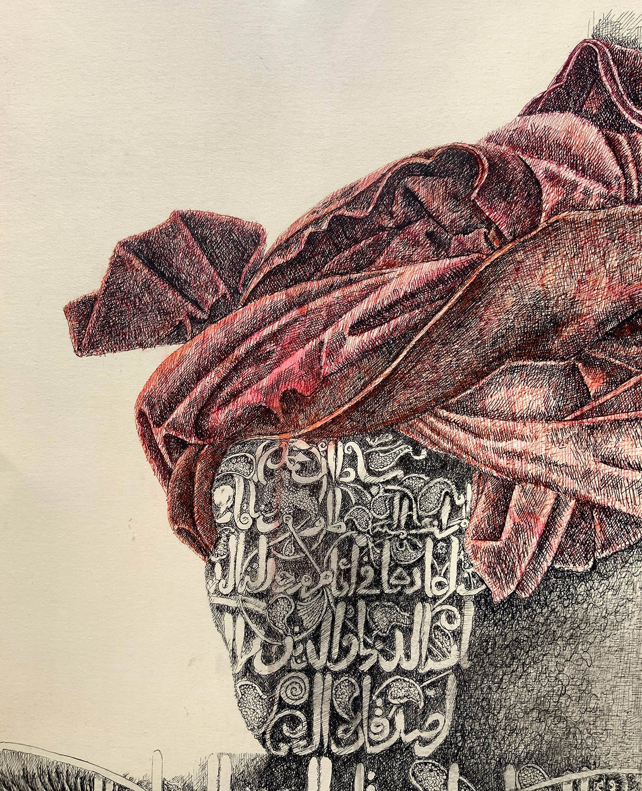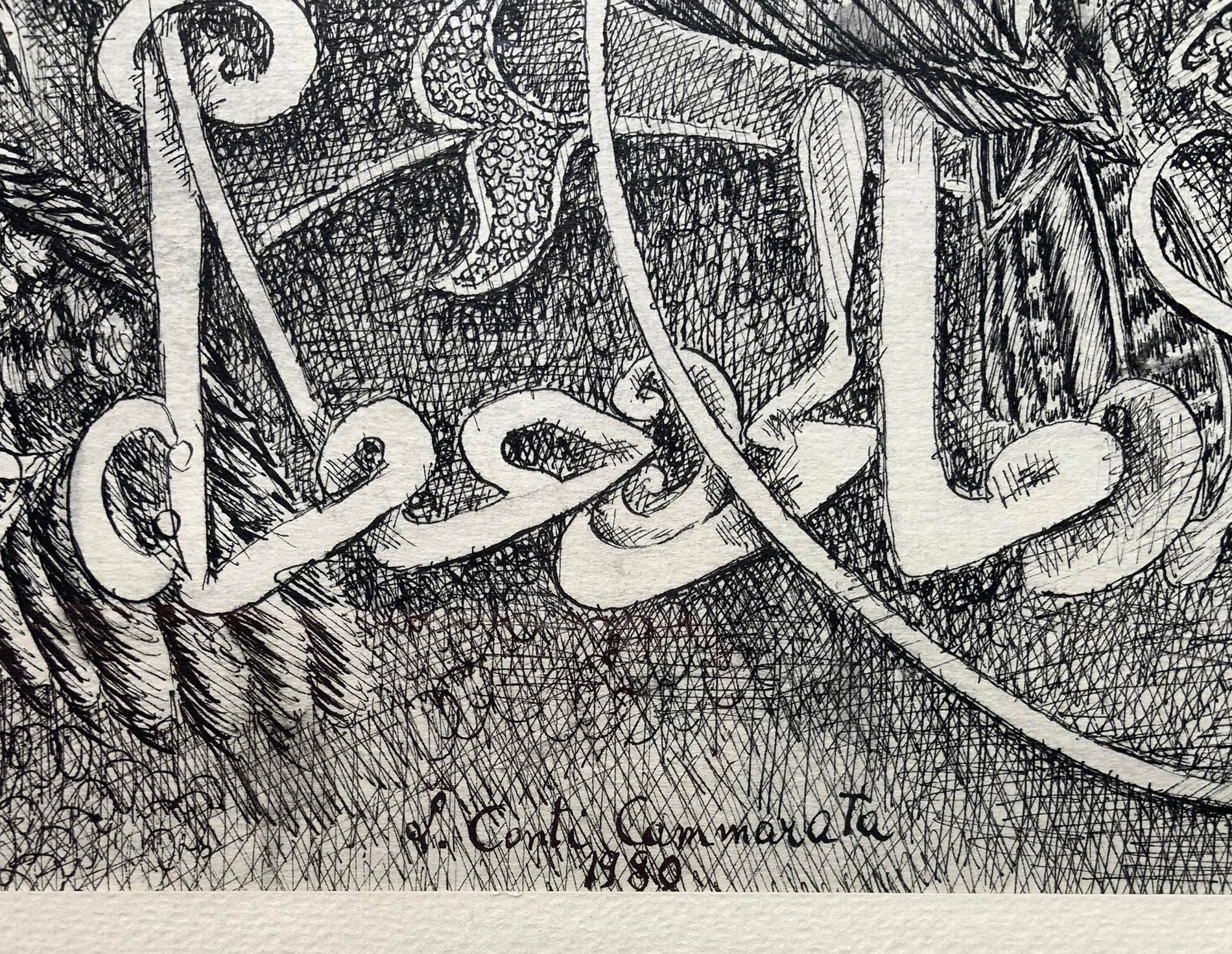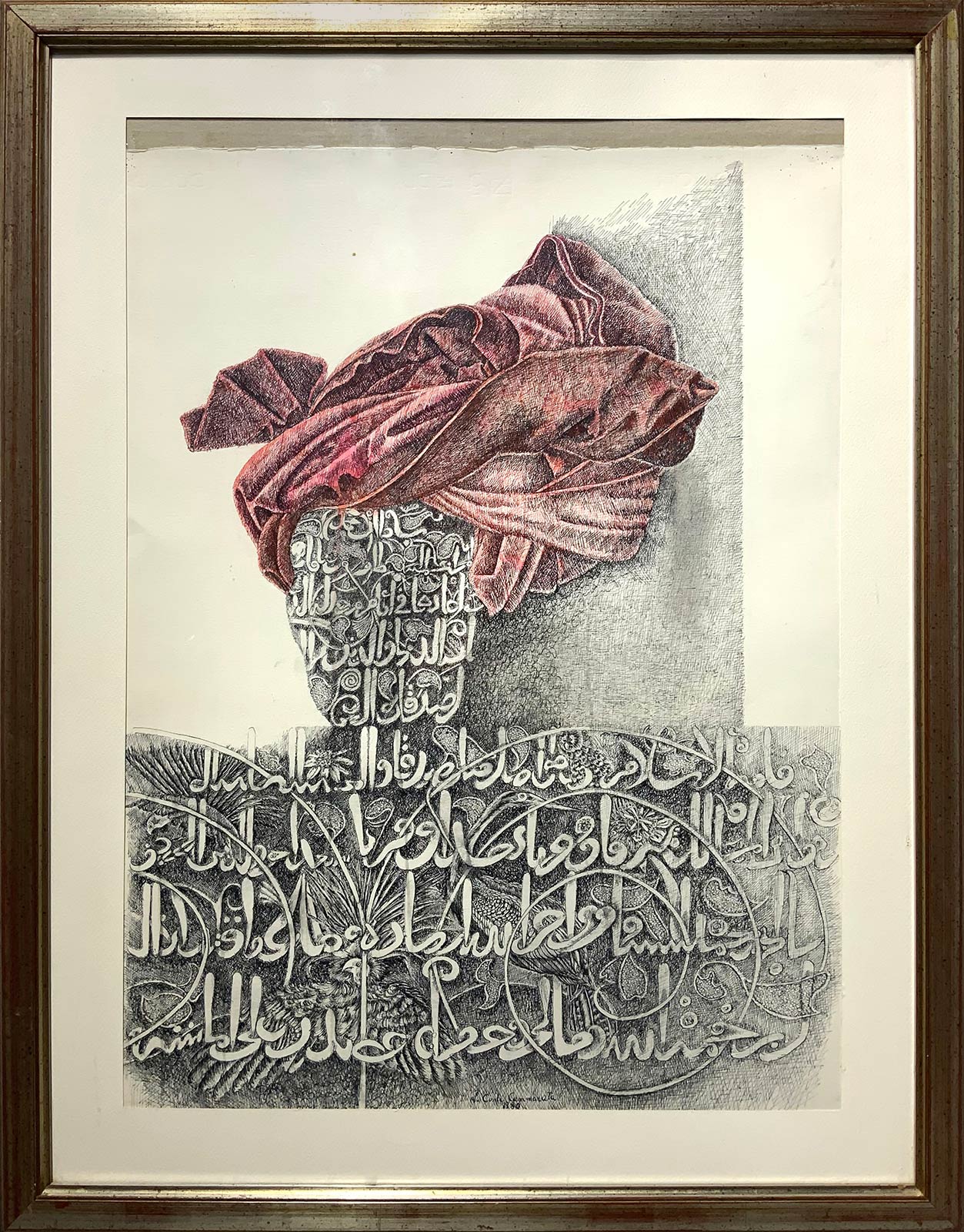 Viso di donna con copricapo. 86x66, disegno colorato a china. Firmato e datato Conti Cammarata 1980.