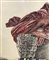 Viso di donna con copricapo. 86x66, disegno colorato a china. Firmato e...