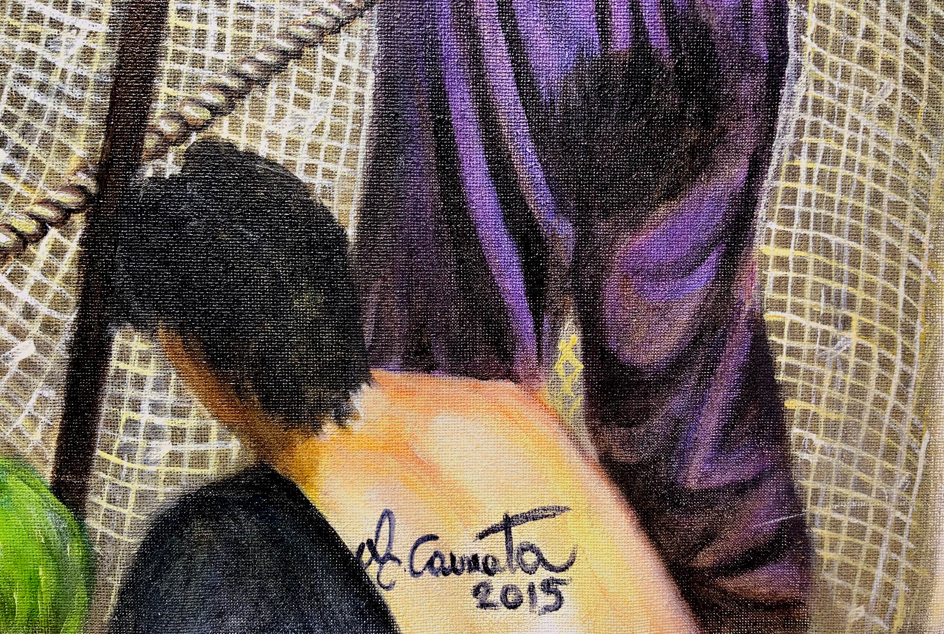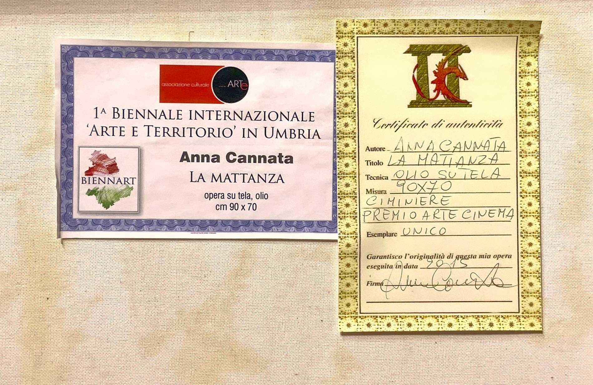 Anna Cannata (1944, Catania). La mattanza dei tonni. 70x90, olio su tela. Firmato e datato 2015 in basso a destra. Premiato Biennart in Umbria.