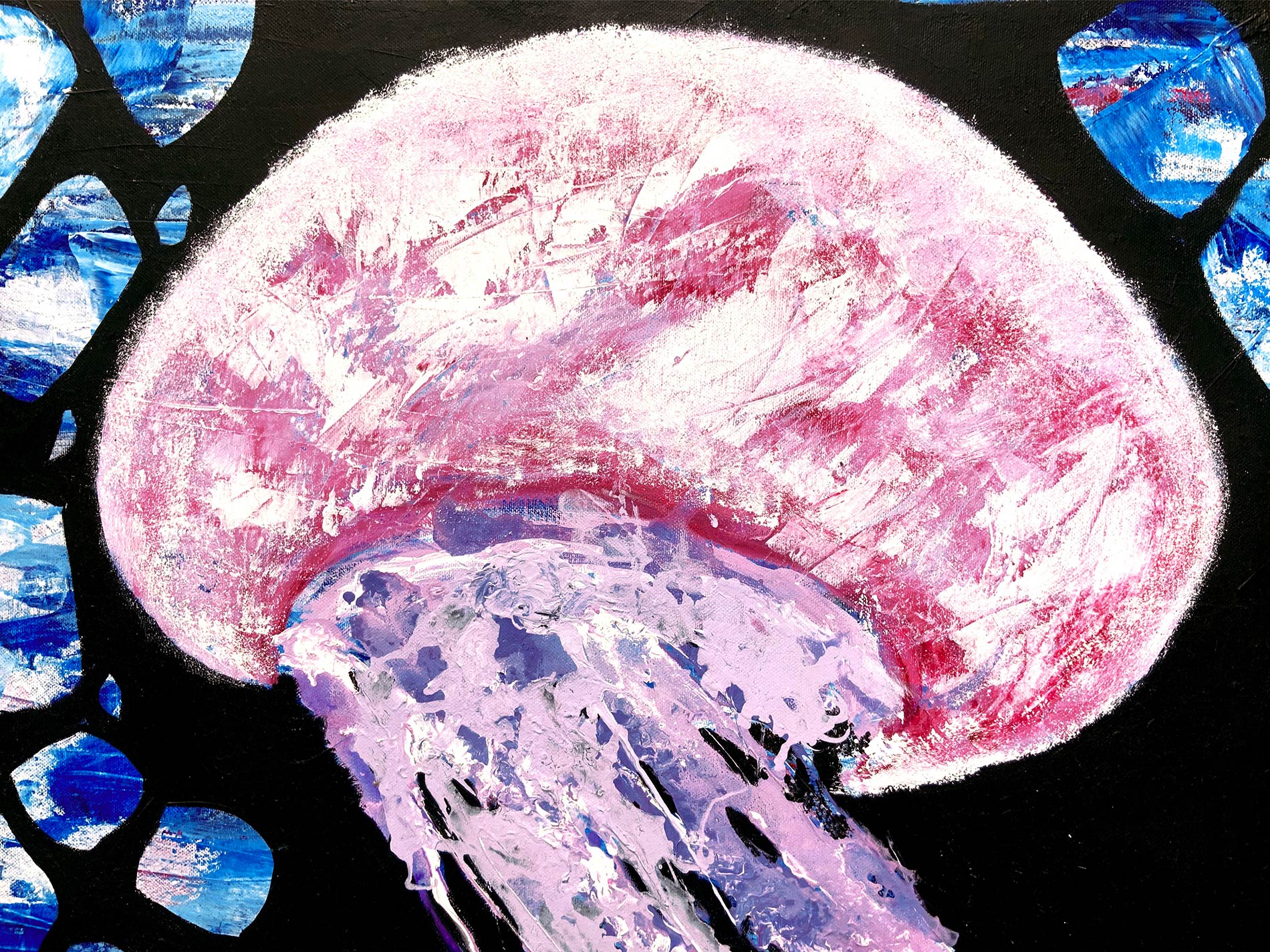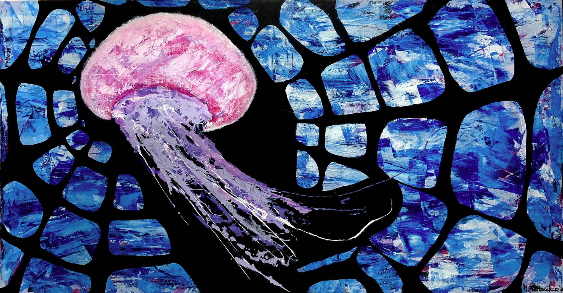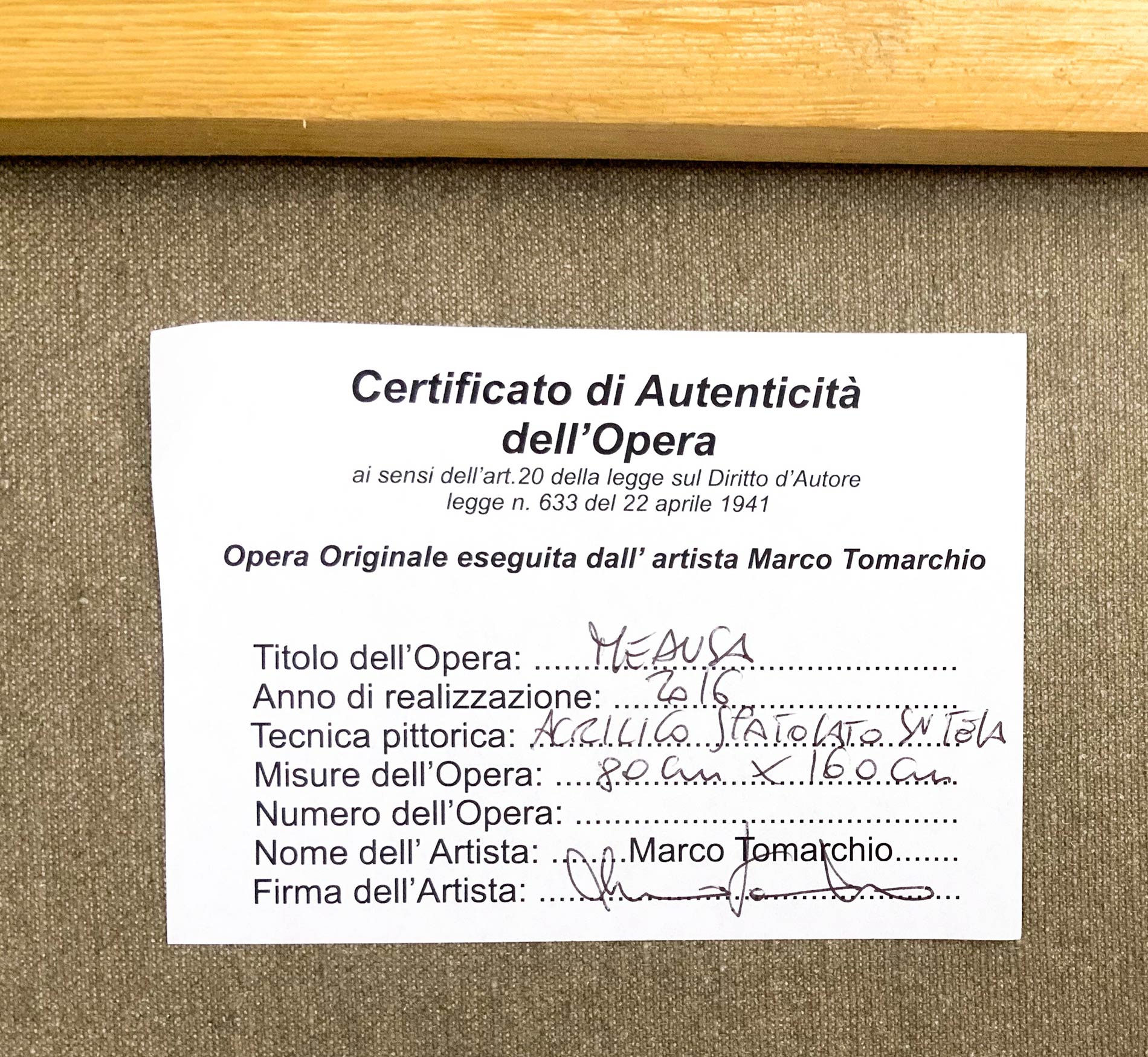 Tomarchio Marco (Scordia,1980). Isola di plastica. 80x160, acrilico su tela. Firmato e datato 2016 in basso a destra. Opera selezionata alla biennale di Milano 2017.