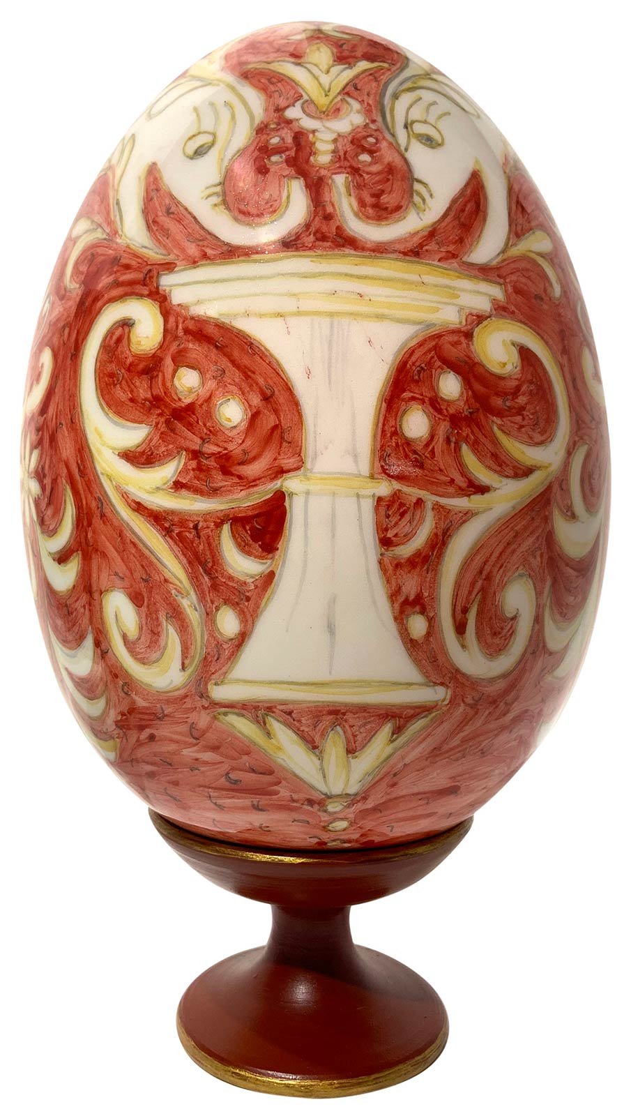 Lotto 295 | Uovo in ceramica dipinto a mano con decori floreali. H Cm 33 con base