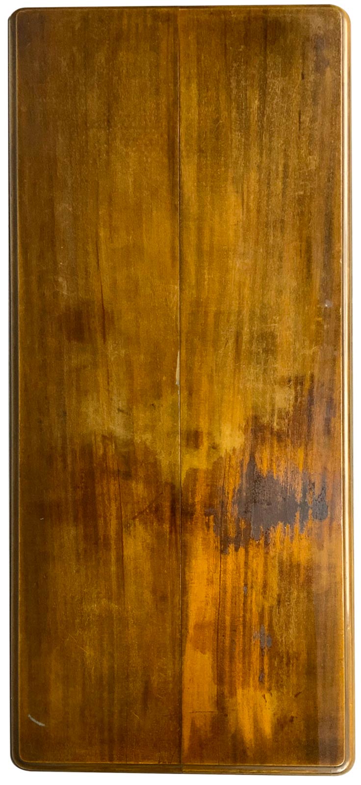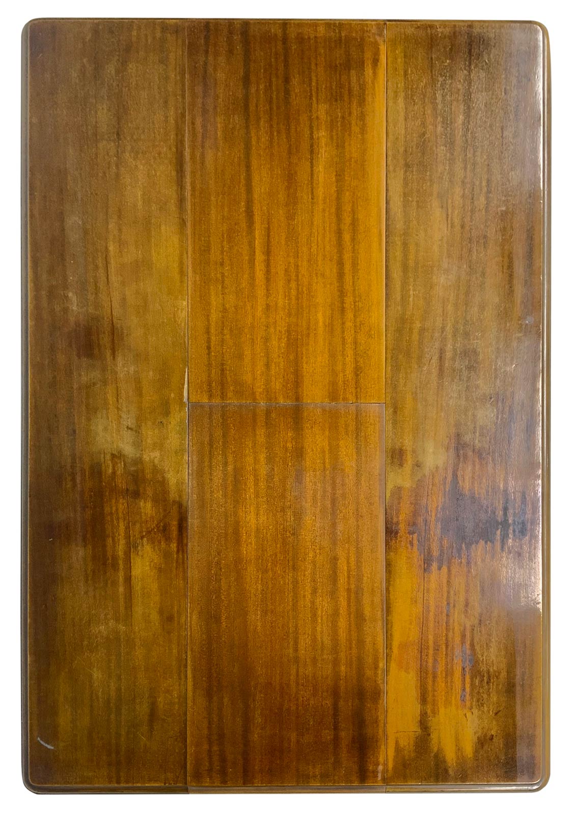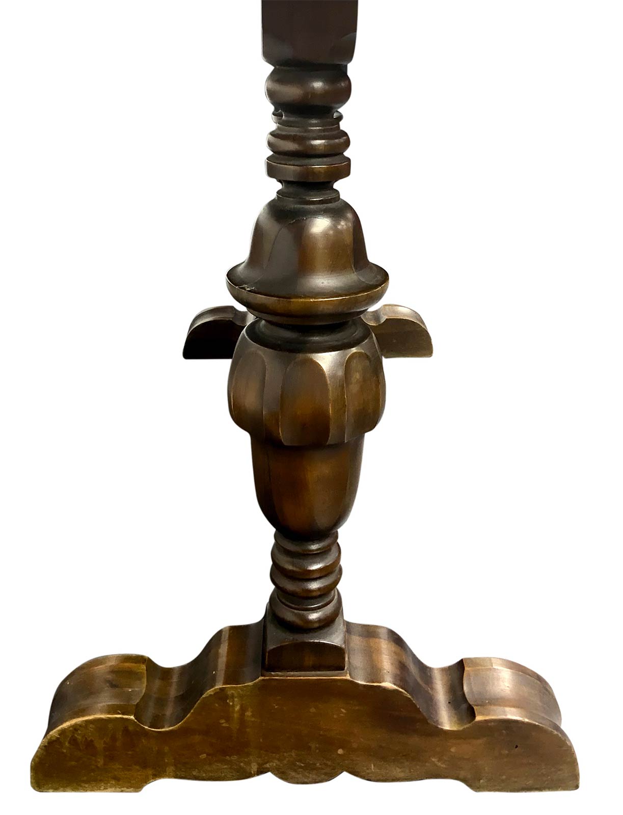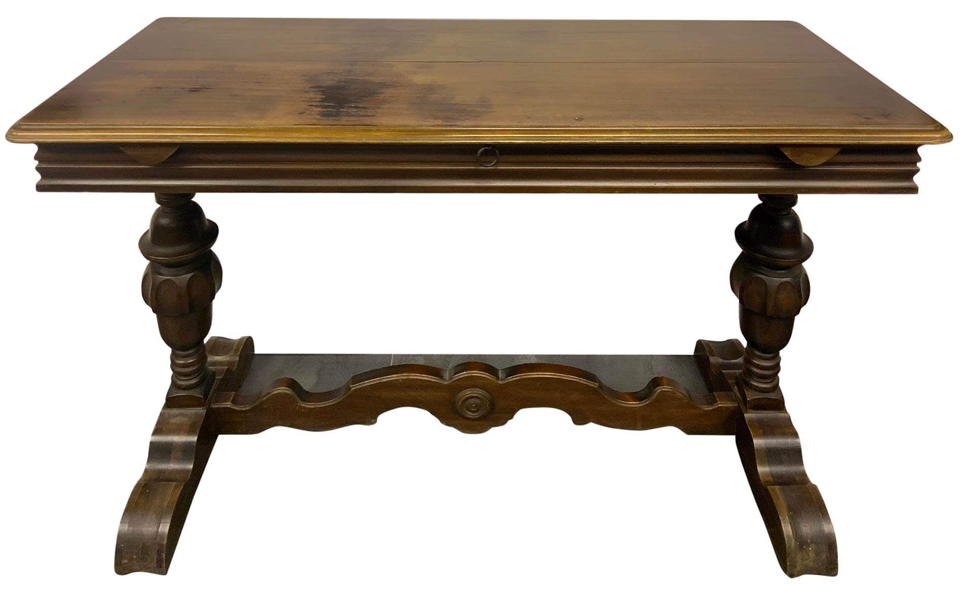 Tavolo in stile in legno di noce. XX secolo. H cm 79, 121x50, aperto cm 80x121x50.