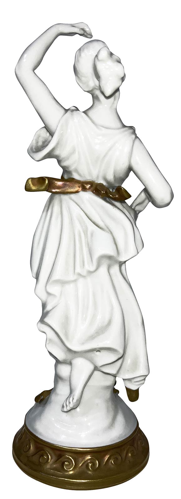 Statuetta in porcellana in colore bianco e oro. Dama in posa. H Cm 18. 1942