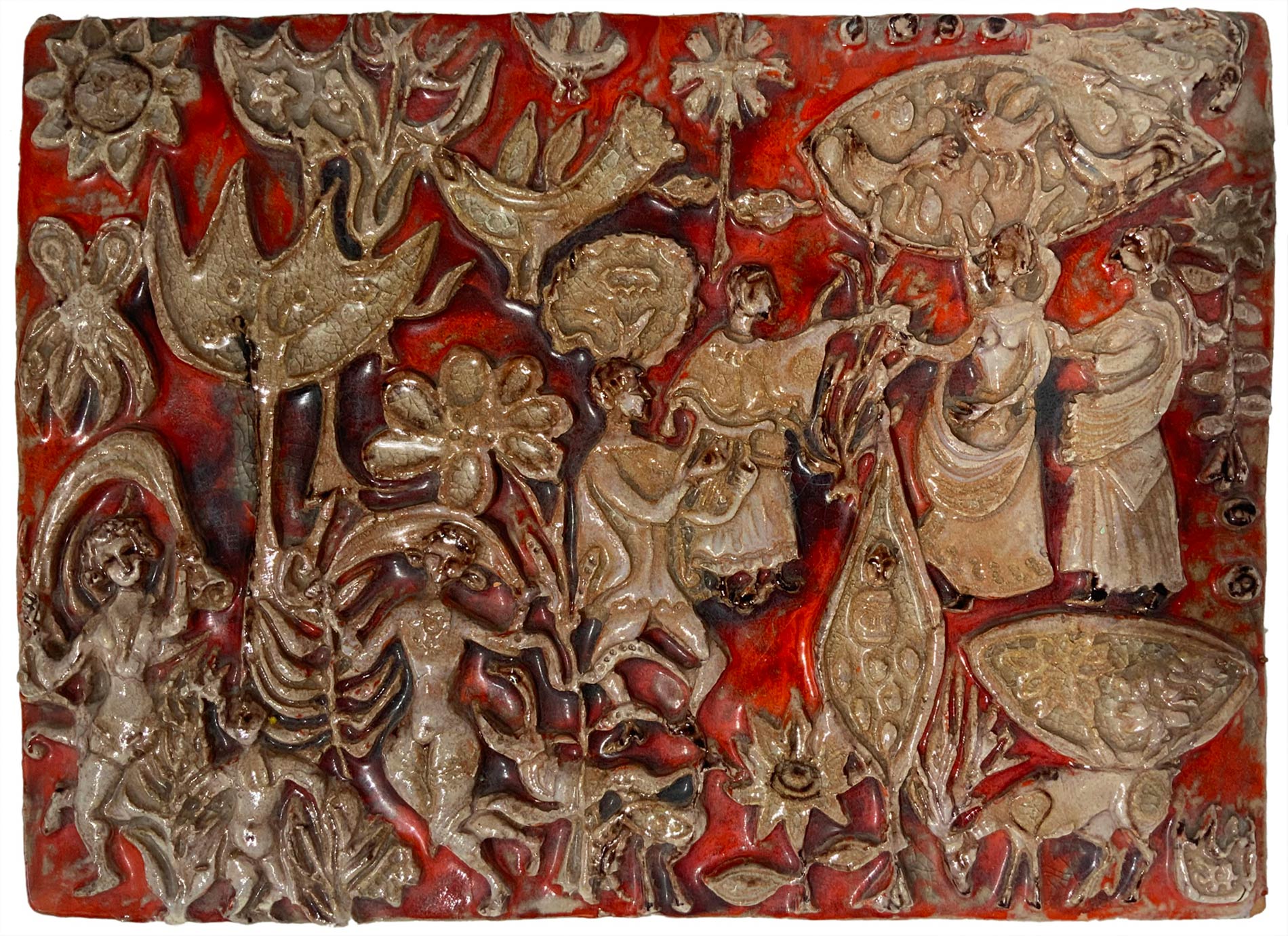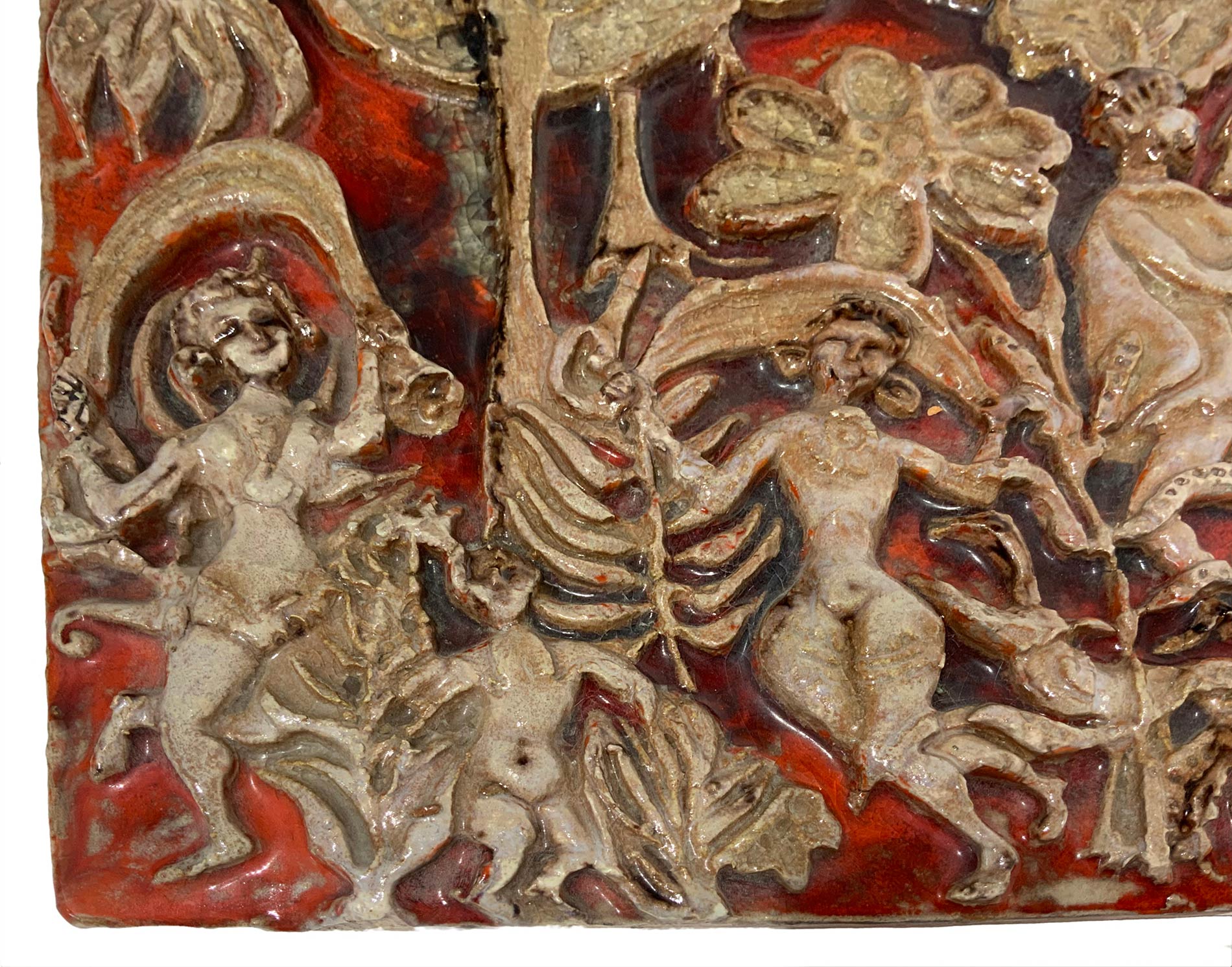 De Simone. Anni’ 50. Placca in terracotta maiolicata invetriata, rifinita al...