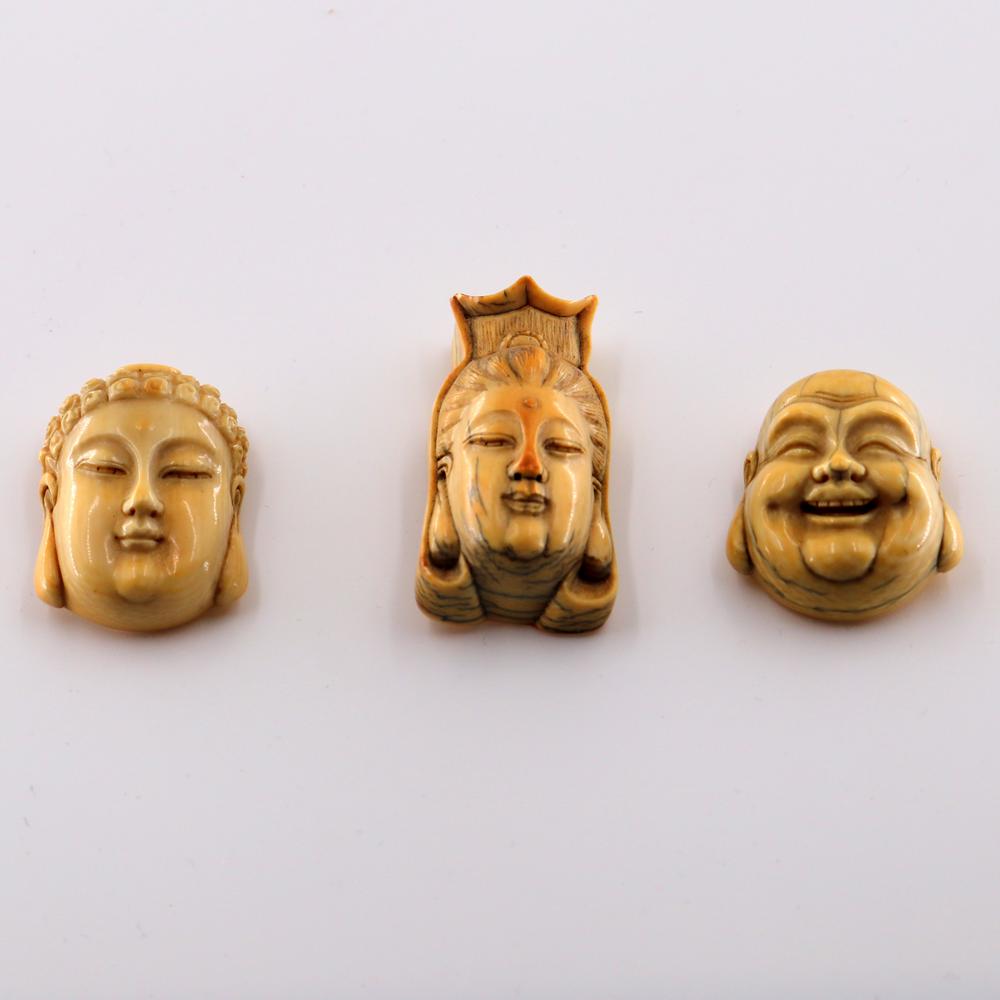 LOTTO DI TRE PENDENTI IN AVORIO, CINA, INIZIO XIX SECOLO