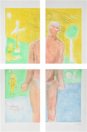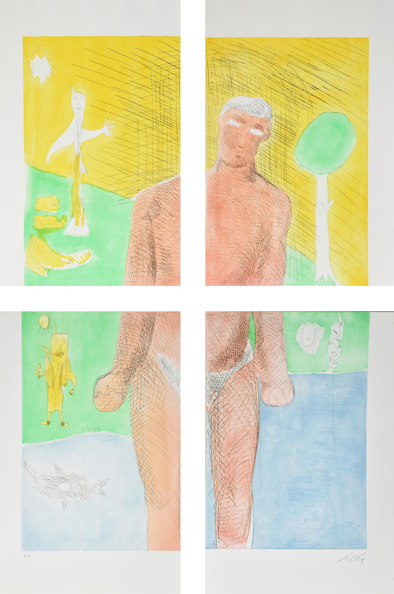 Sandro Chia SENZA TITOLO opera composta da 4 incisioni su carta, battute cm...