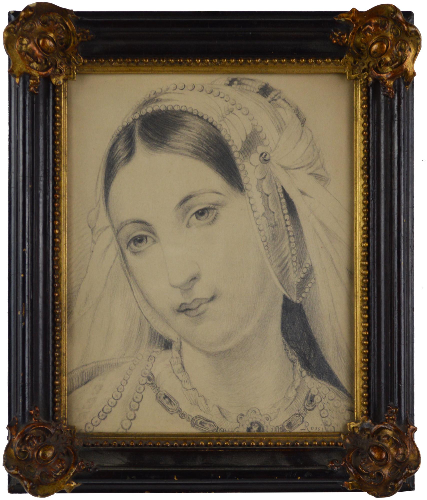 Lotto 50 | Luigi (a firma) Rossi RITRATTO DI FANCIULLA matita su carta, cm 22x18,5 firmato