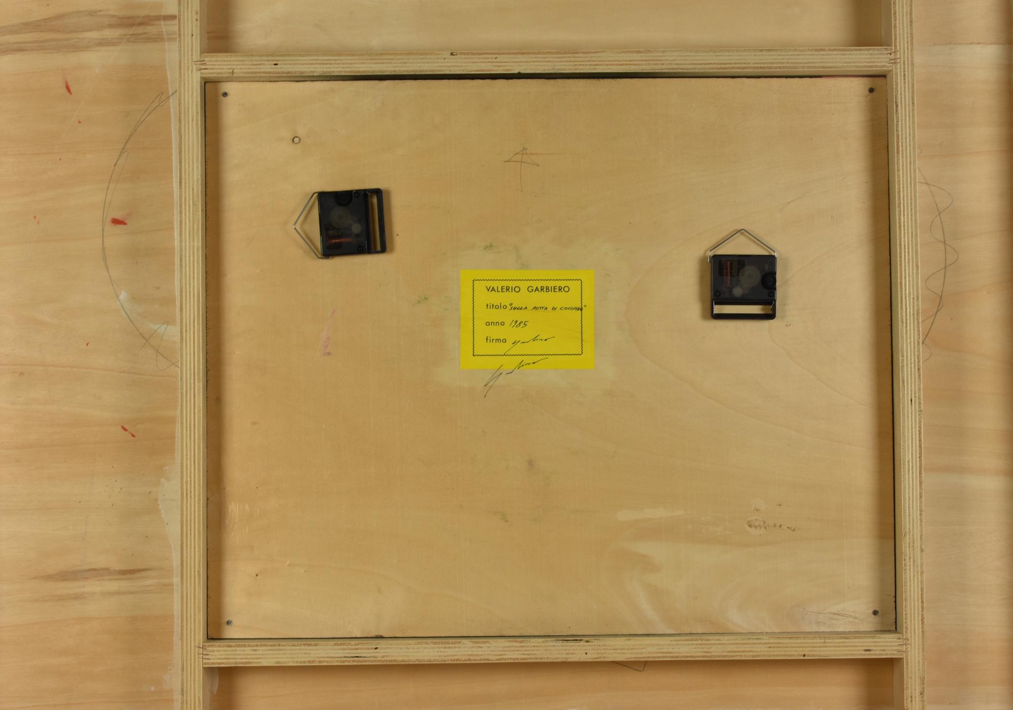 tecnica mista su compensato con meccanismo di orologio, cm 71x102x6