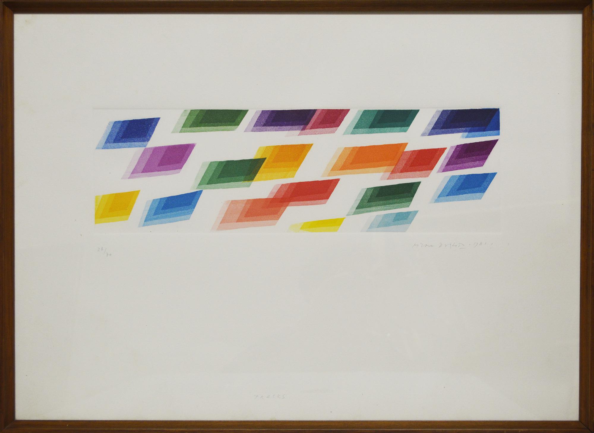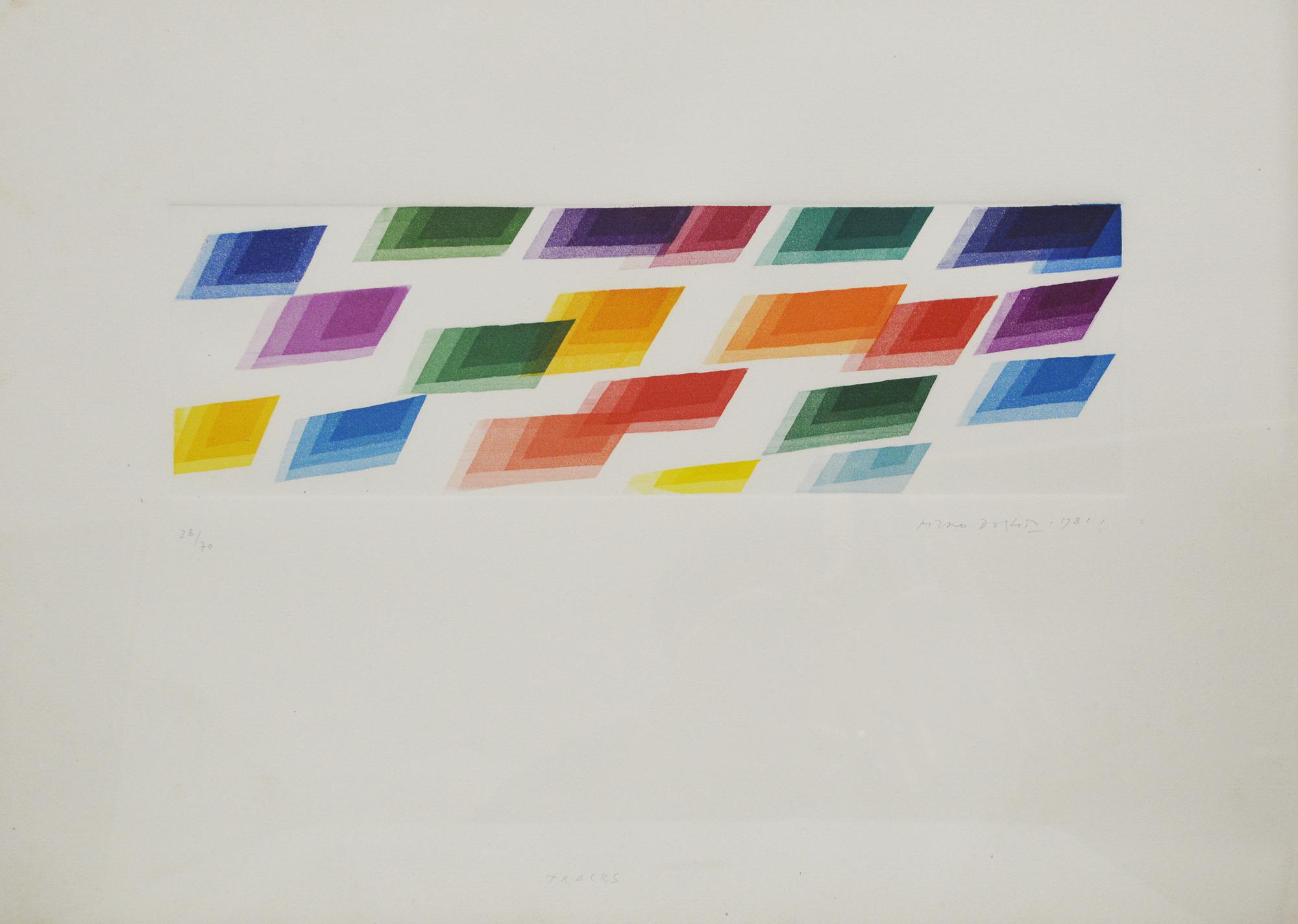 Piero Dorazio TRACKS acquaforte acquatinta, cm 15,5x49, foglio cm 50,5x70;...