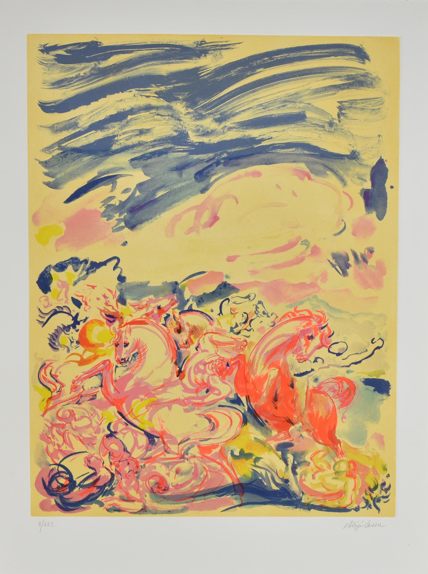 Aligi Sassu SENZA TITOLO incisione su carta, foglio cm 76x56, battuta cm...