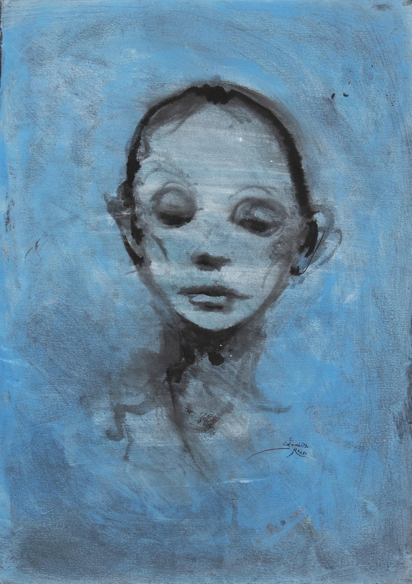 Enrico Colombotto Rosso RITRATTO FEMMINILE tempera e china su cartone, cm...
