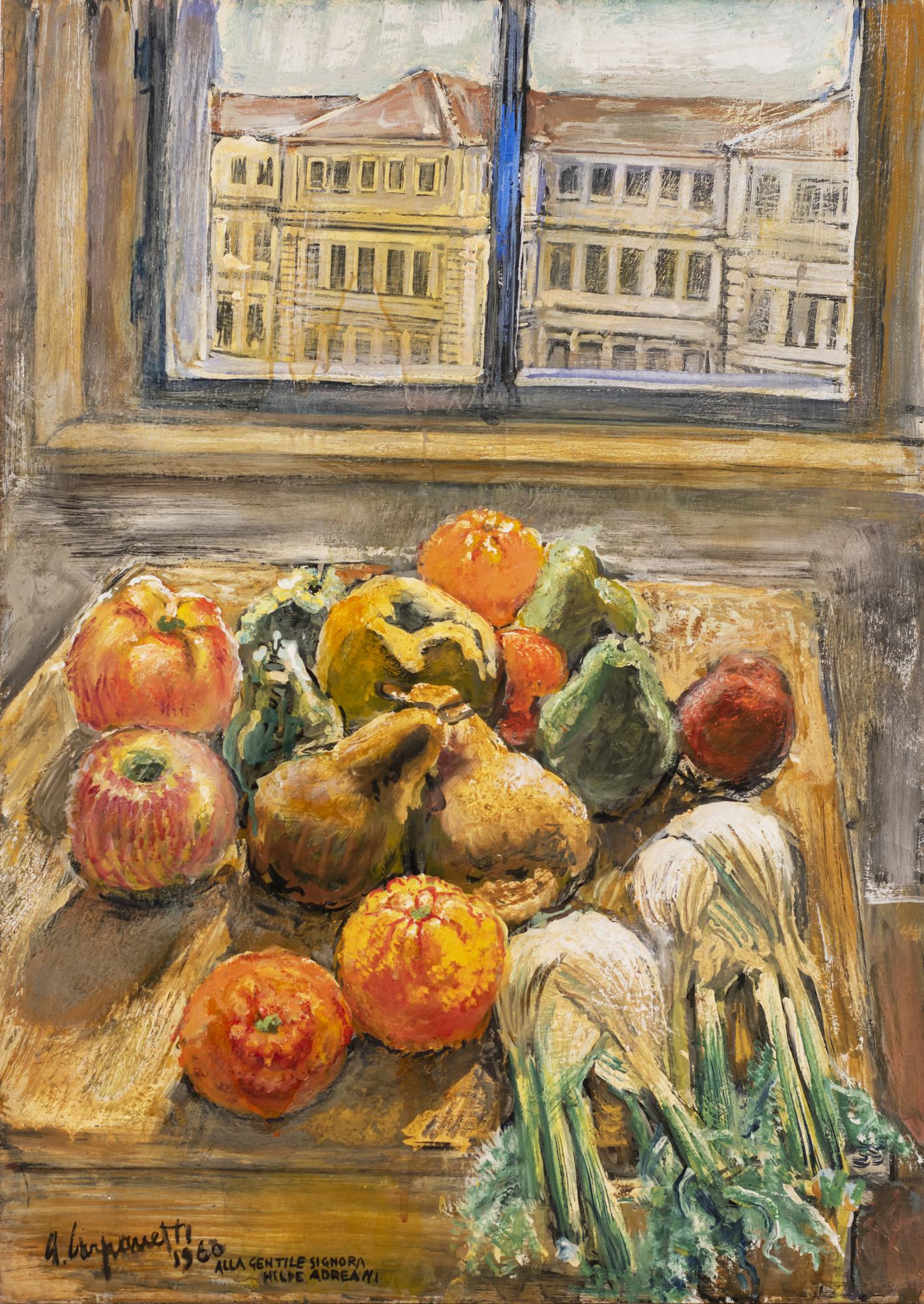 Lotto 254 | Arnaldo Carpanetti NATURA MORTA olio su faesite, cm 70x50 firmato, datato e...
