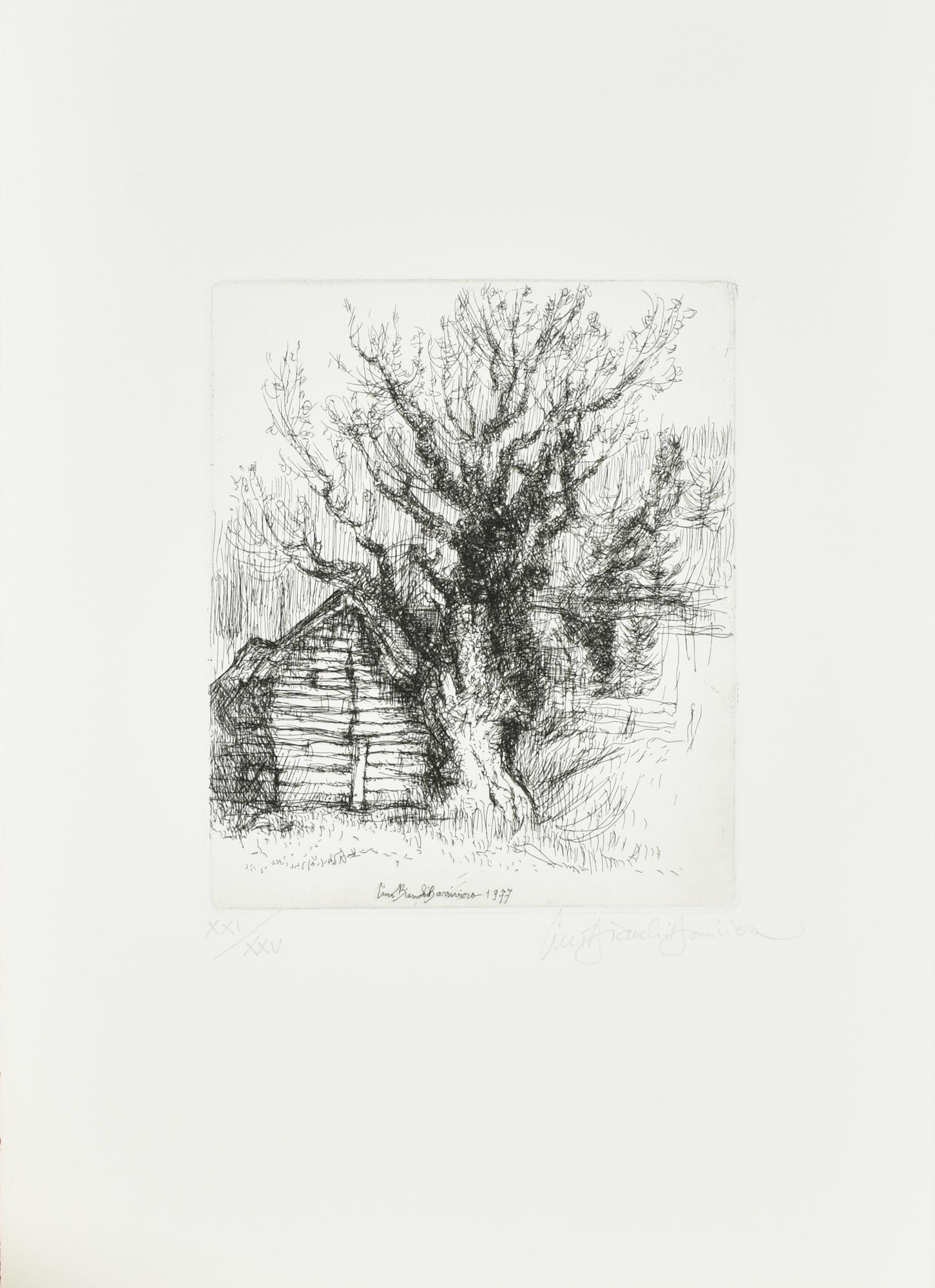 - Lino Bianchi Barriviera, Al Lago di Bracciano, acquaforte su carta, battuta cm 24x19,5, foglio cm 50x35