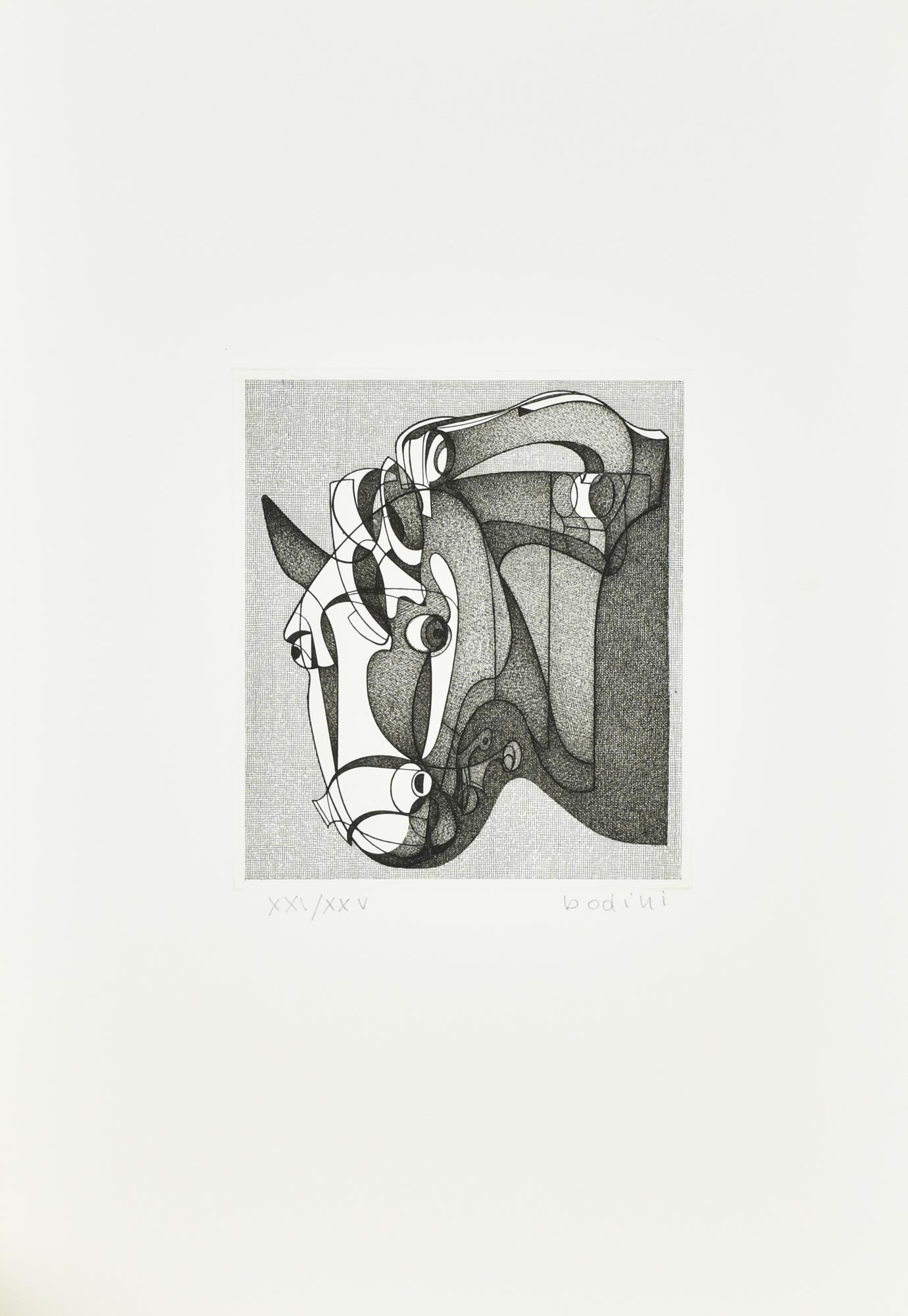 - Floriano Bodini, Testa di Cavallo, acquaforte su carta, battuta cm 20x17, foglio cm 50x35