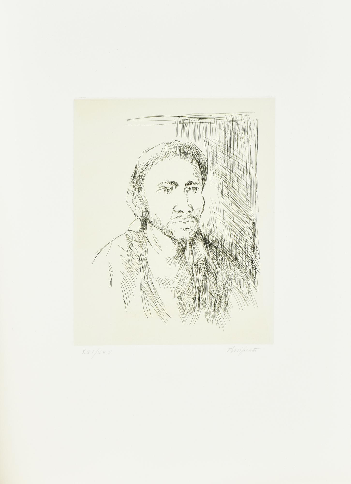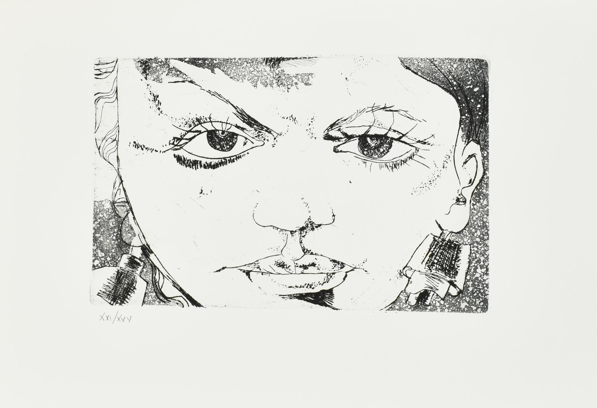 - Fernando Farulli, Volto, acquaforte su carta, battuta cm 20x31, foglio cm 35x50