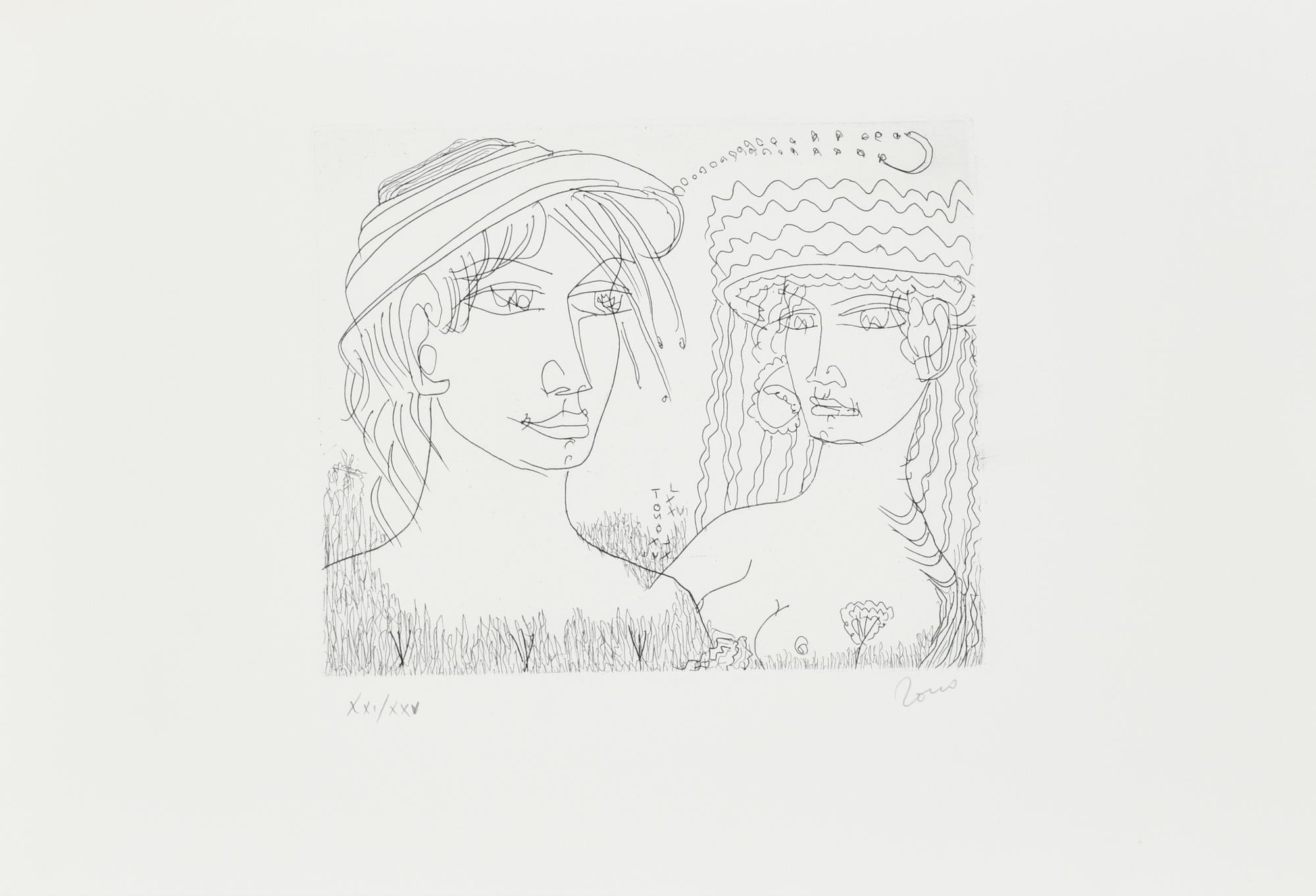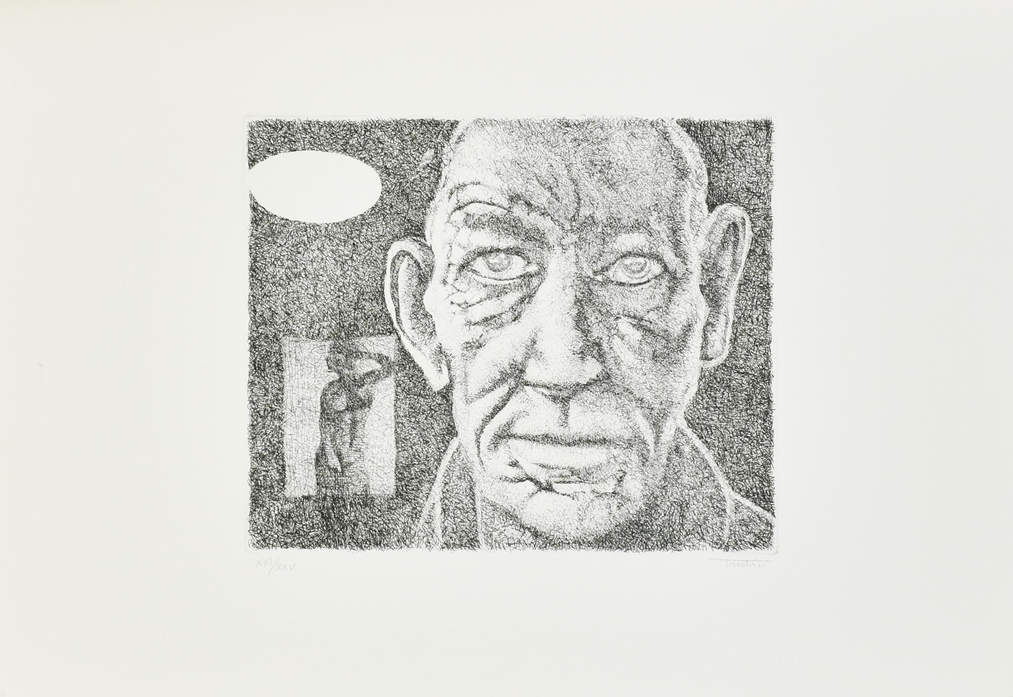 - Ernesto Treccani, Volti, acquaforte su carta, battuta cm 24x20, foglio cm 50x35