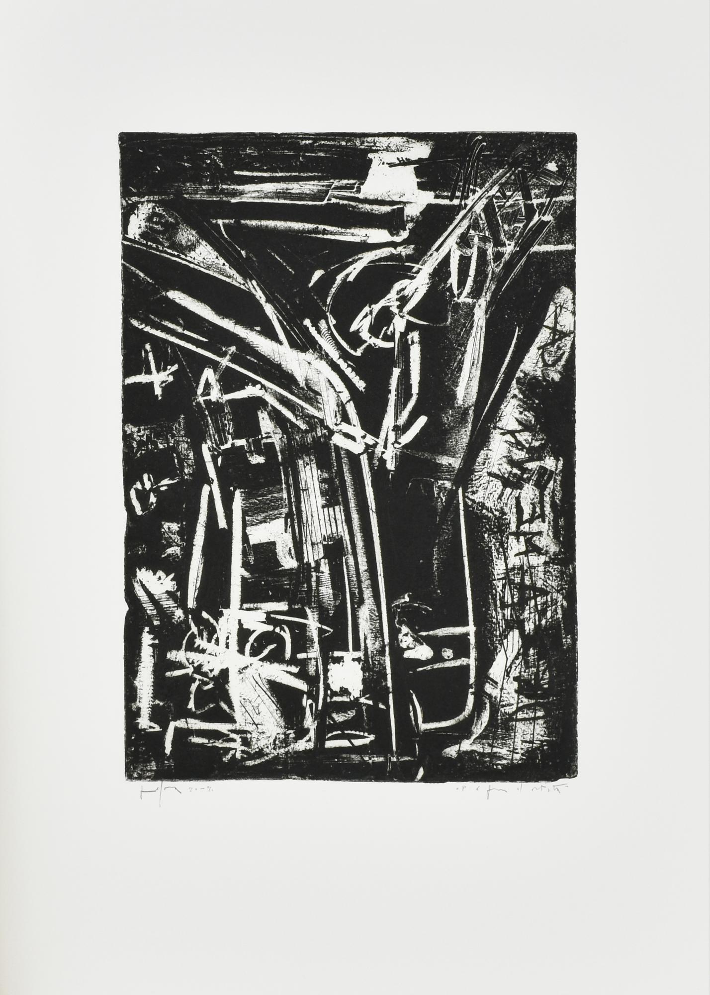 - Emilio Vedova, Crocefissione Contemporanea, acquaforte su carta, battuta cm 32x22, foglio cm 50x35